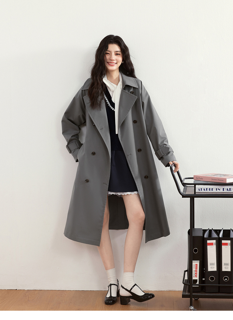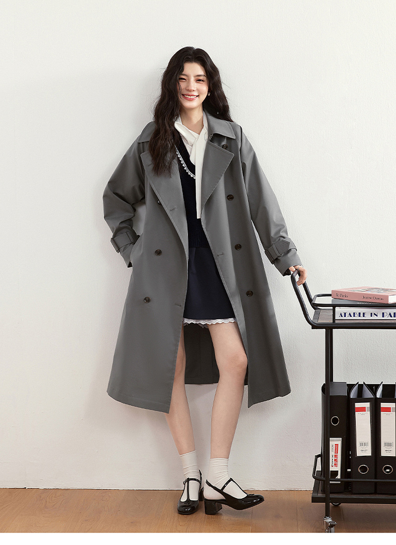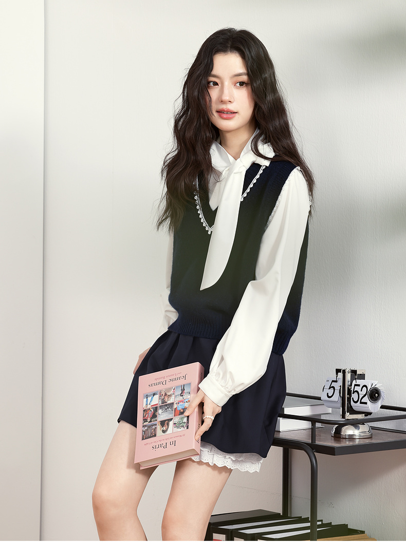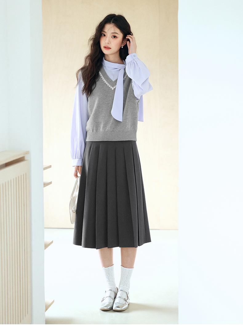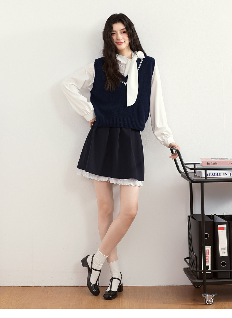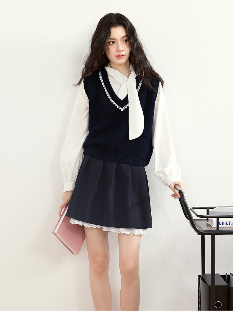 【严选】诗凡黎100%棉V领花边拼接针织马甲25春新品灰色百搭叠穿上衣7G1130681
