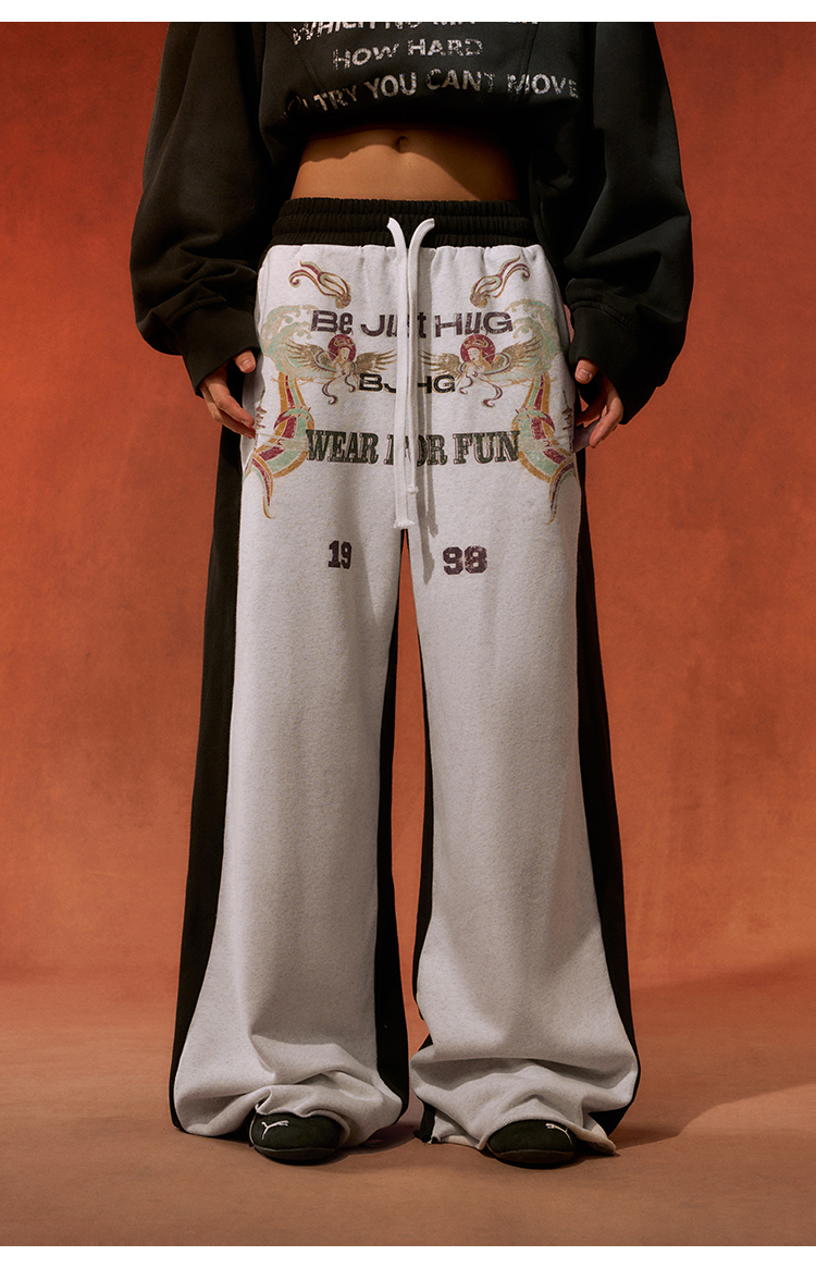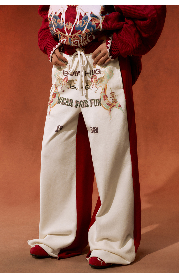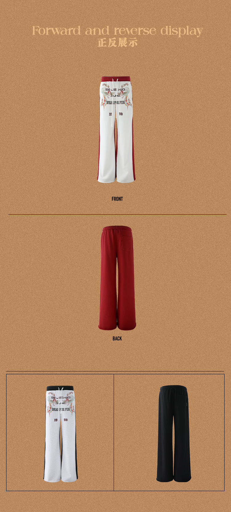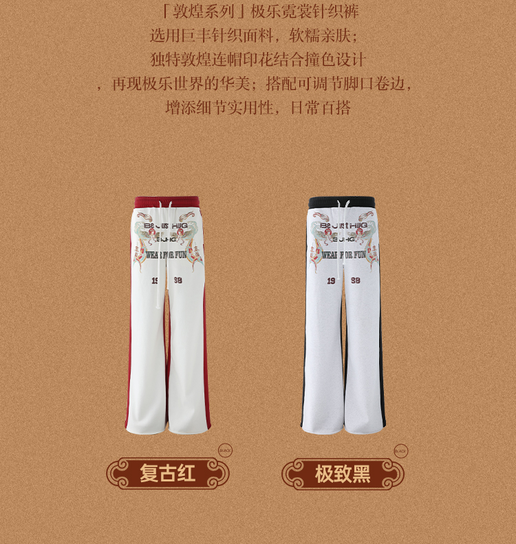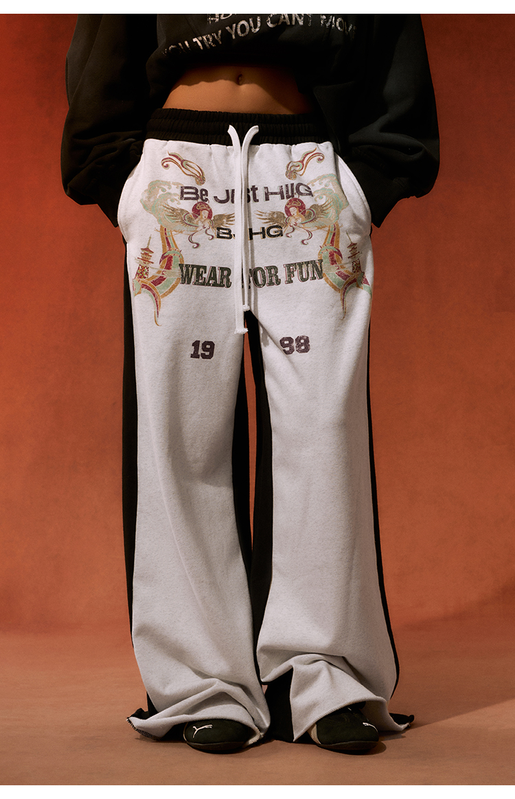 【敦煌联名】BJHG不计后果休闲裤子男款潮撞色印花针织阔腿长裤女