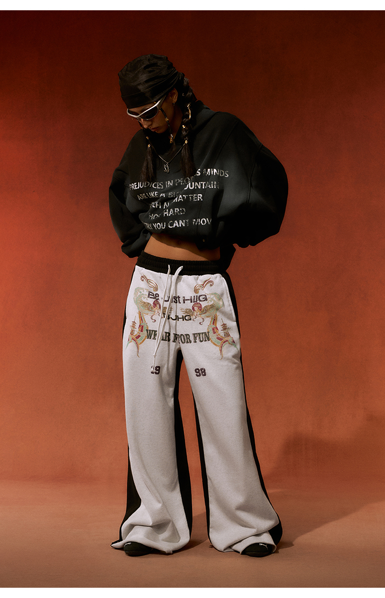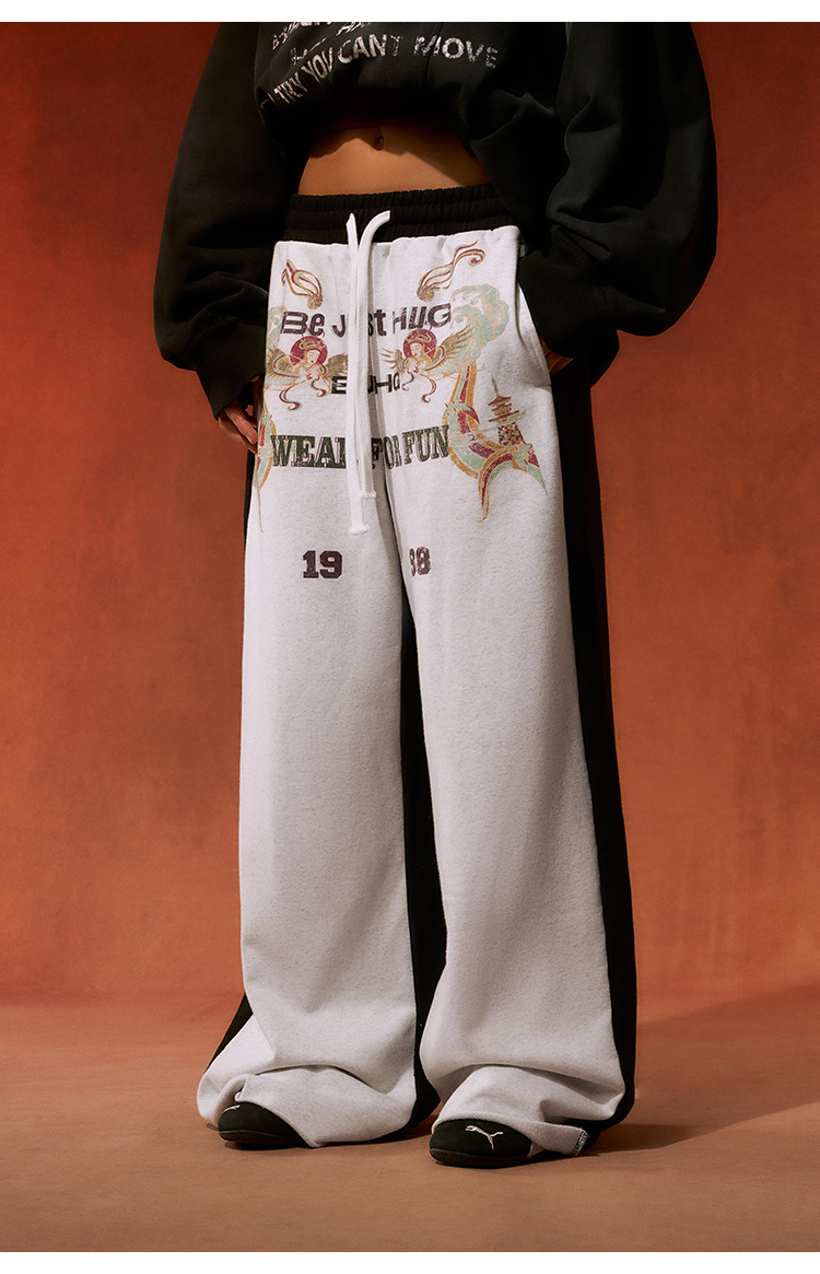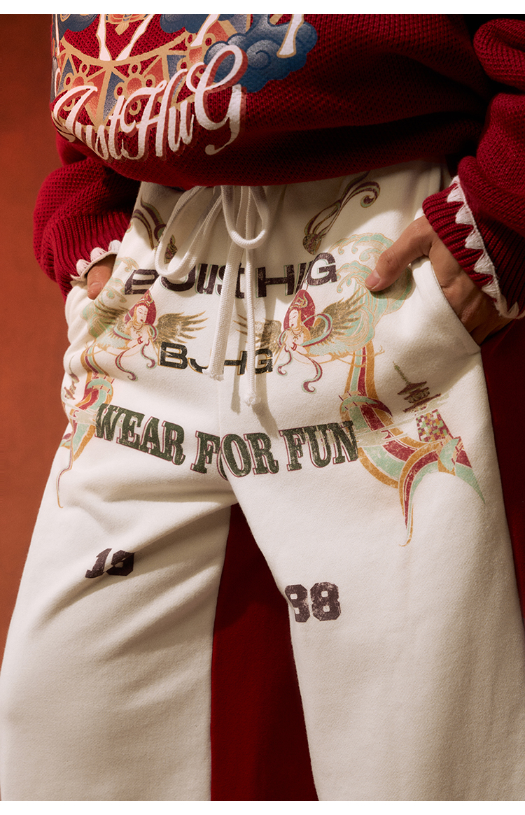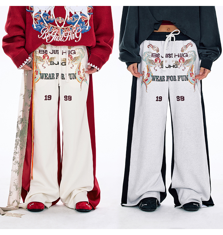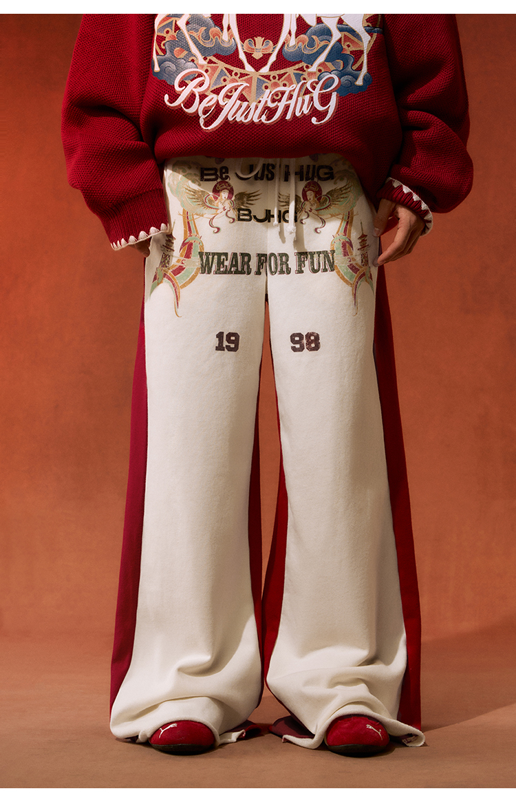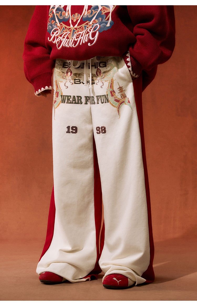 【敦煌联名】BJHG不计后果休闲裤子男款潮撞色印花针织阔腿长裤女
