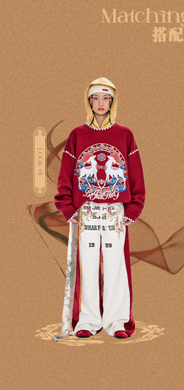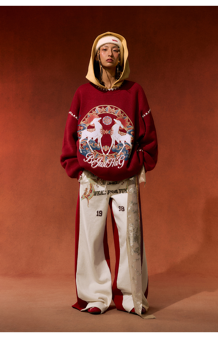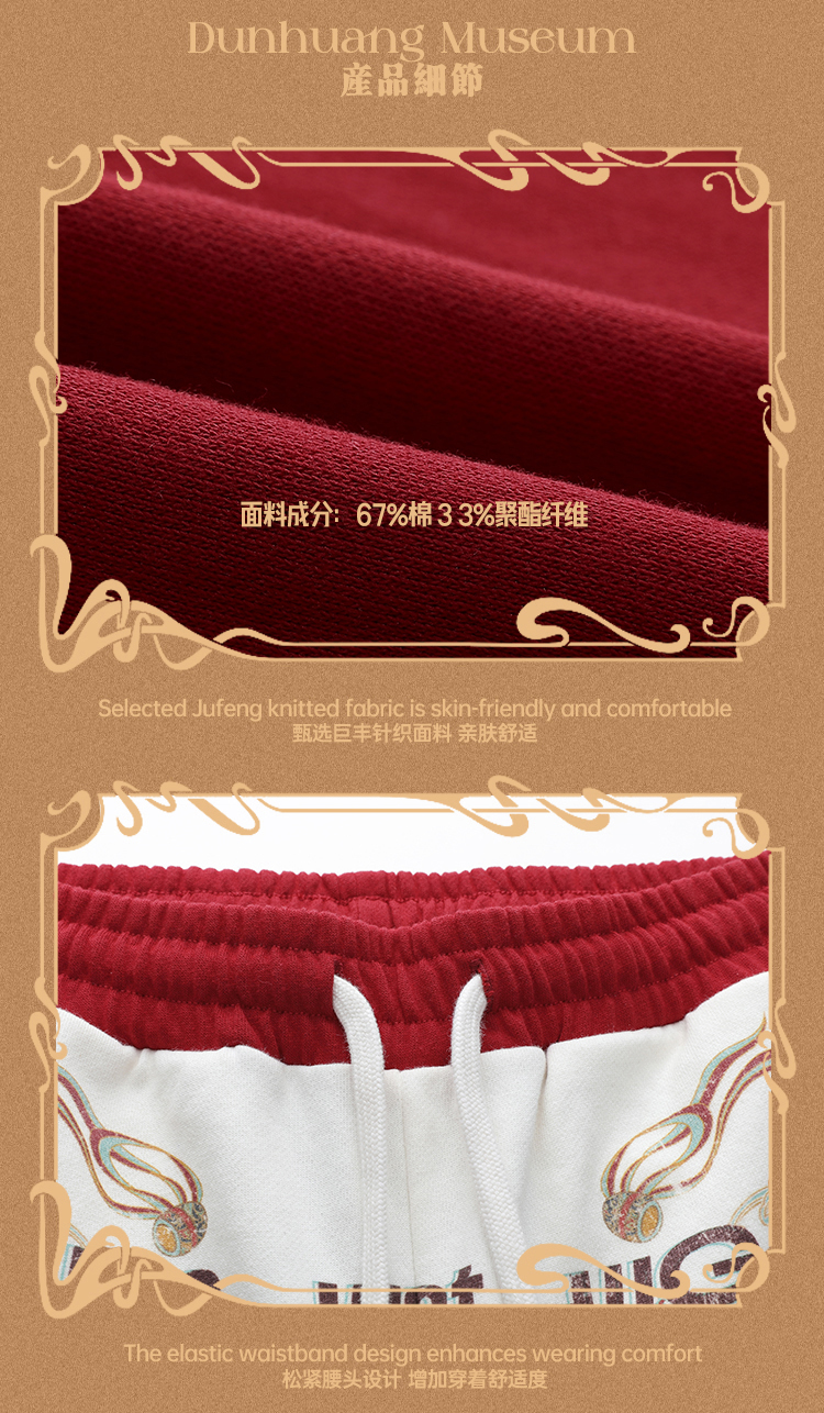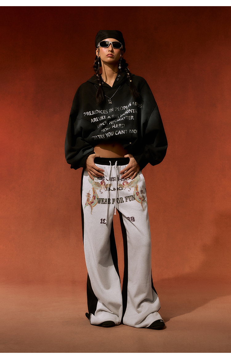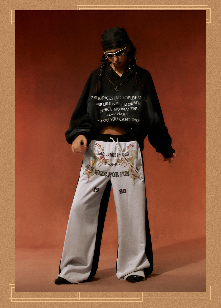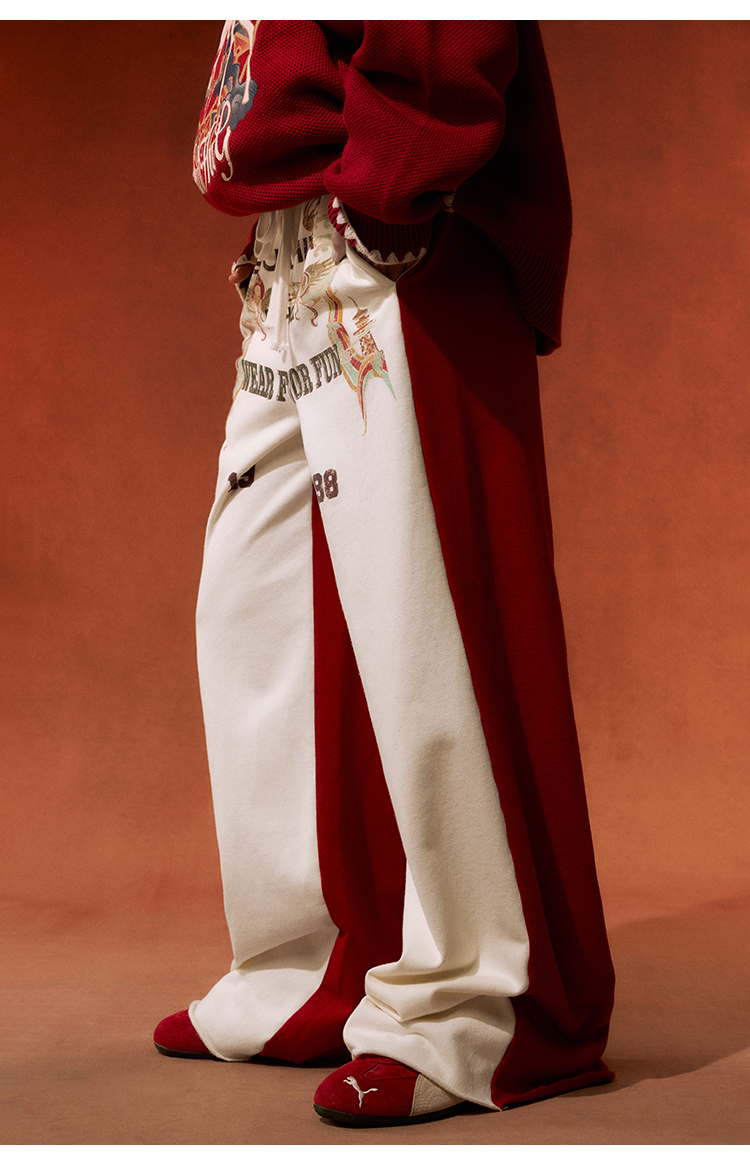 【敦煌联名】BJHG不计后果休闲裤子男款潮撞色印花针织阔腿长裤女