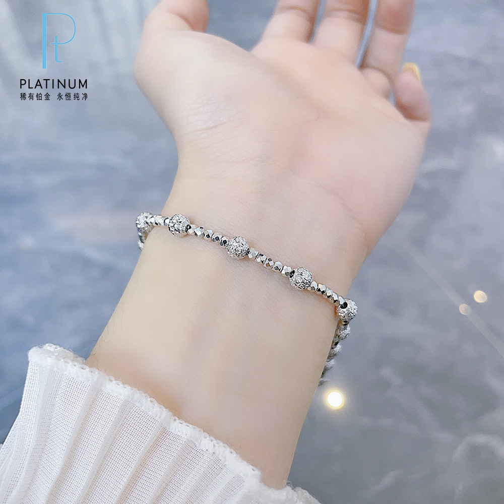 【限时8.8折】【线上铂金馆】PT950 【国际铂金协会】铂金空心调节麒麟珠间蹦迪珠手链(内里为铂金链)(BSL00275)预售产品下单后不退款不退货不换货不补差价)