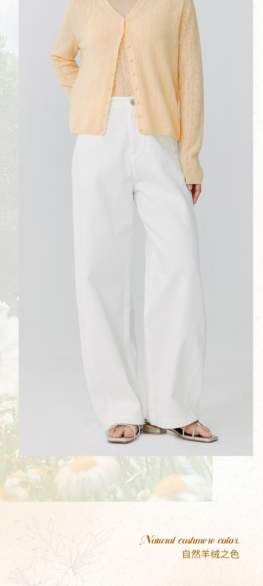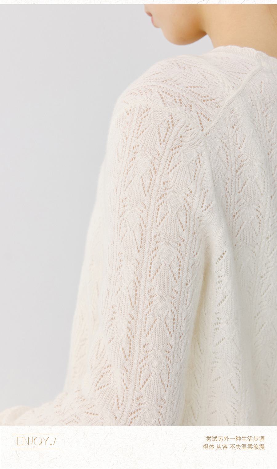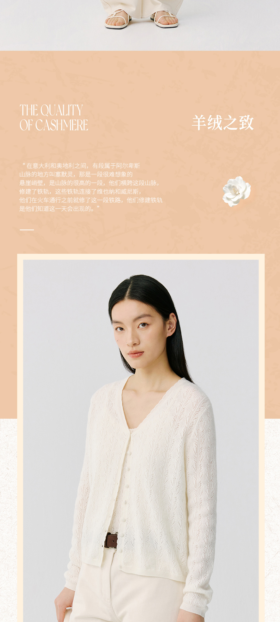 东黎 • 托斯卡纳系列—浮浮花开 山羊绒春季女士V领挑孔开衫 5145