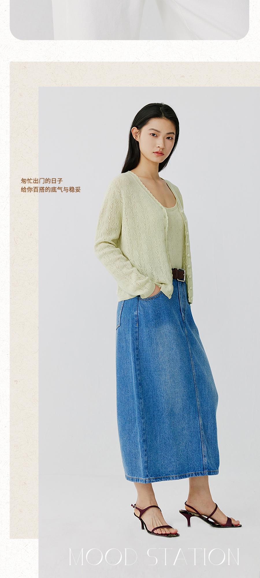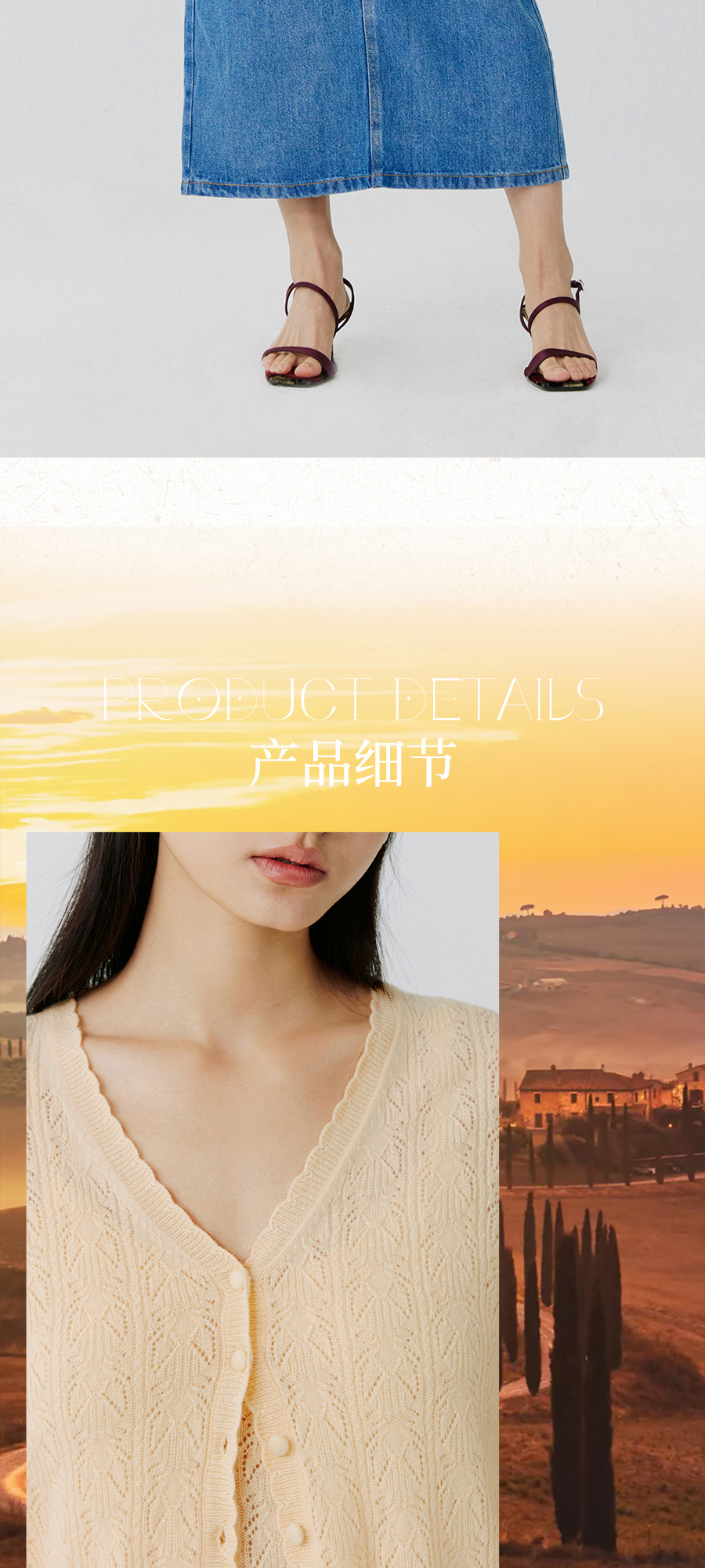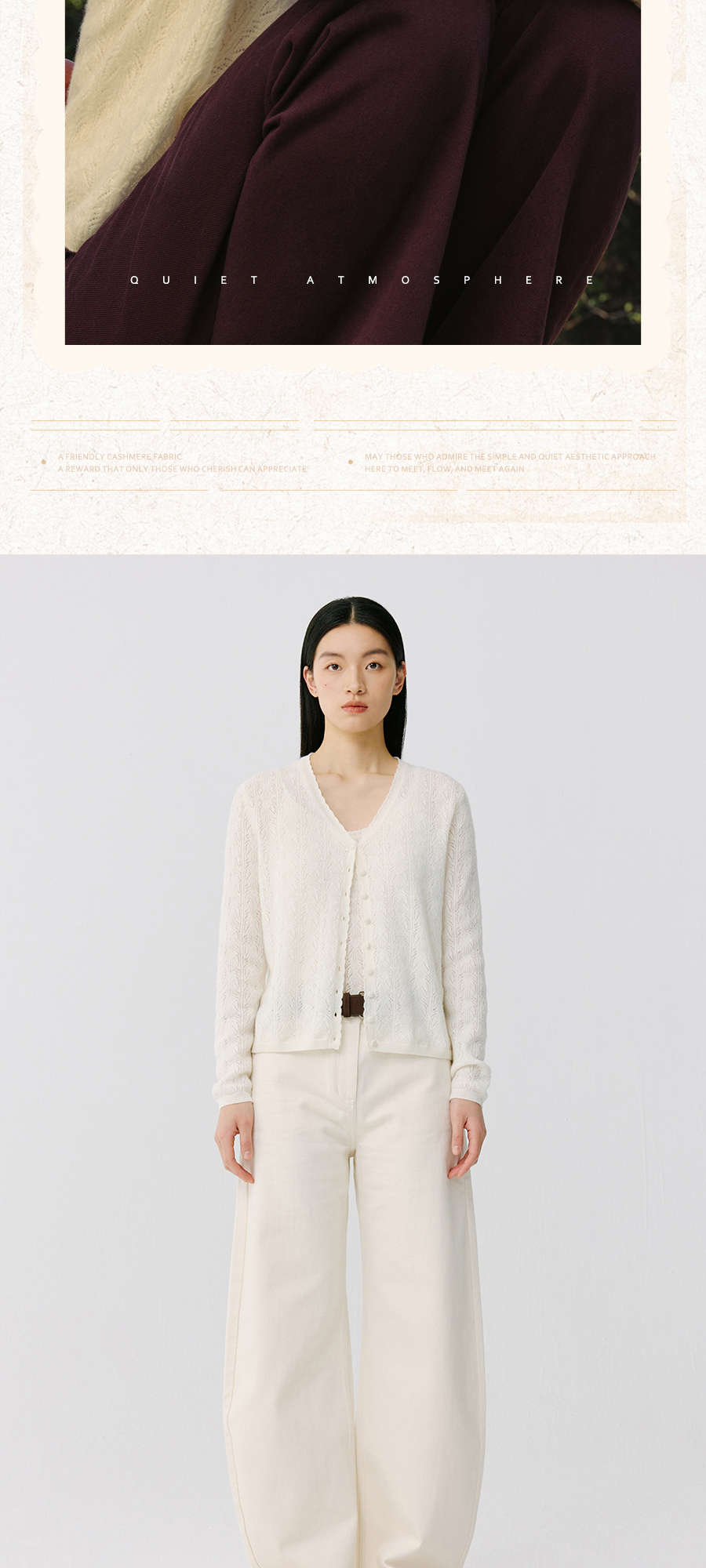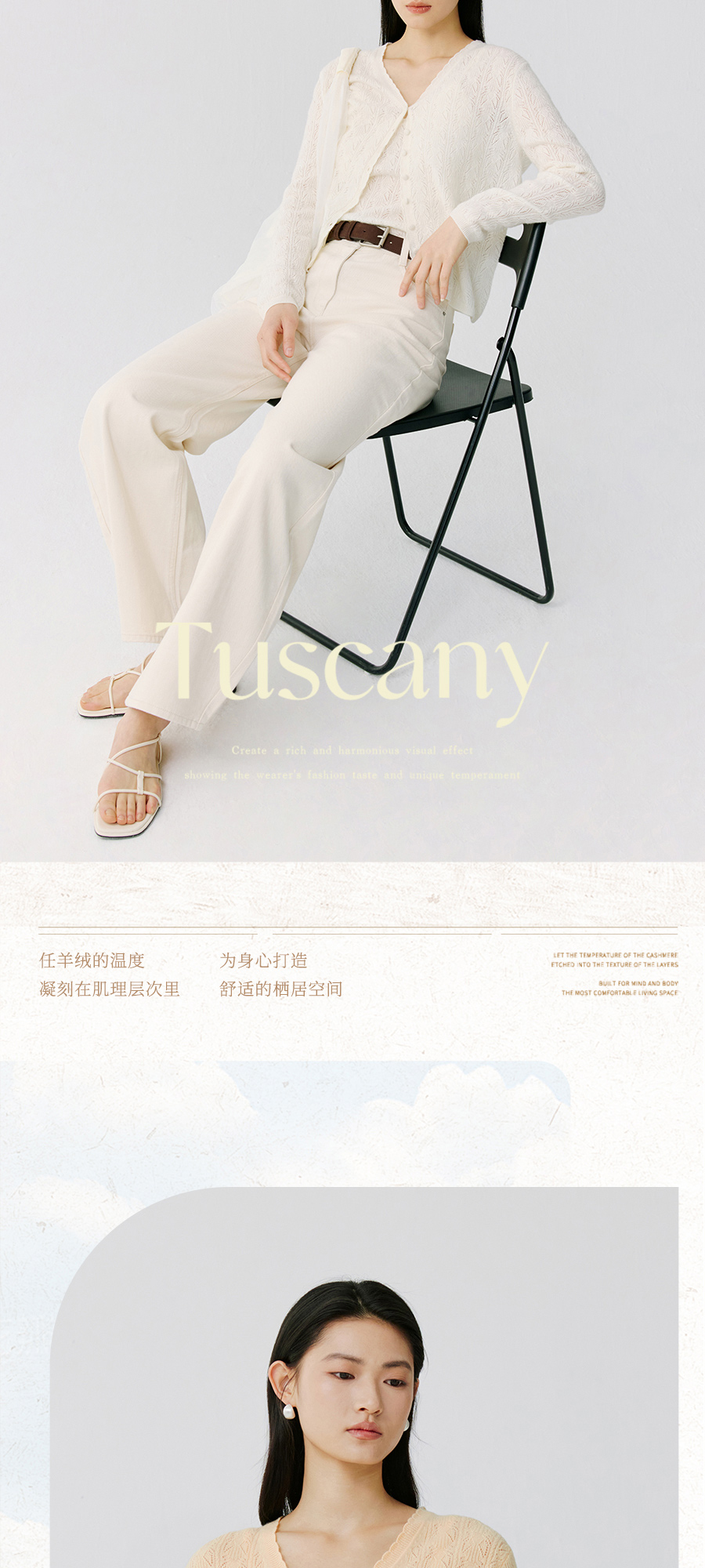 东黎 • 托斯卡纳系列—浮浮花开 山羊绒春季女士V领挑孔开衫 5145