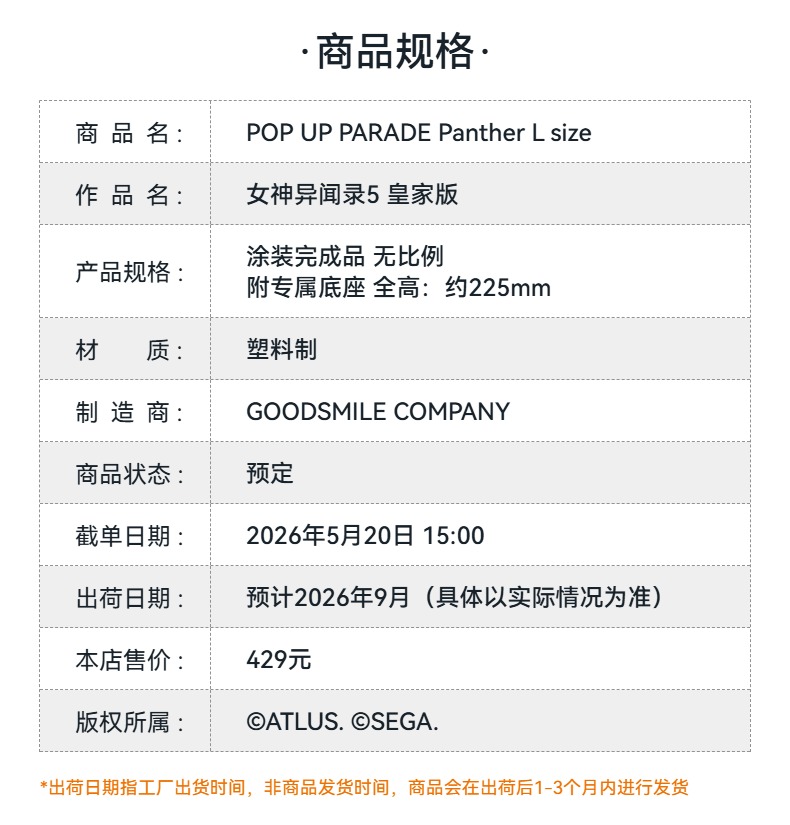 【GSC预售定金】POP UP PARADE Panther L size女神异闻录5皇家版