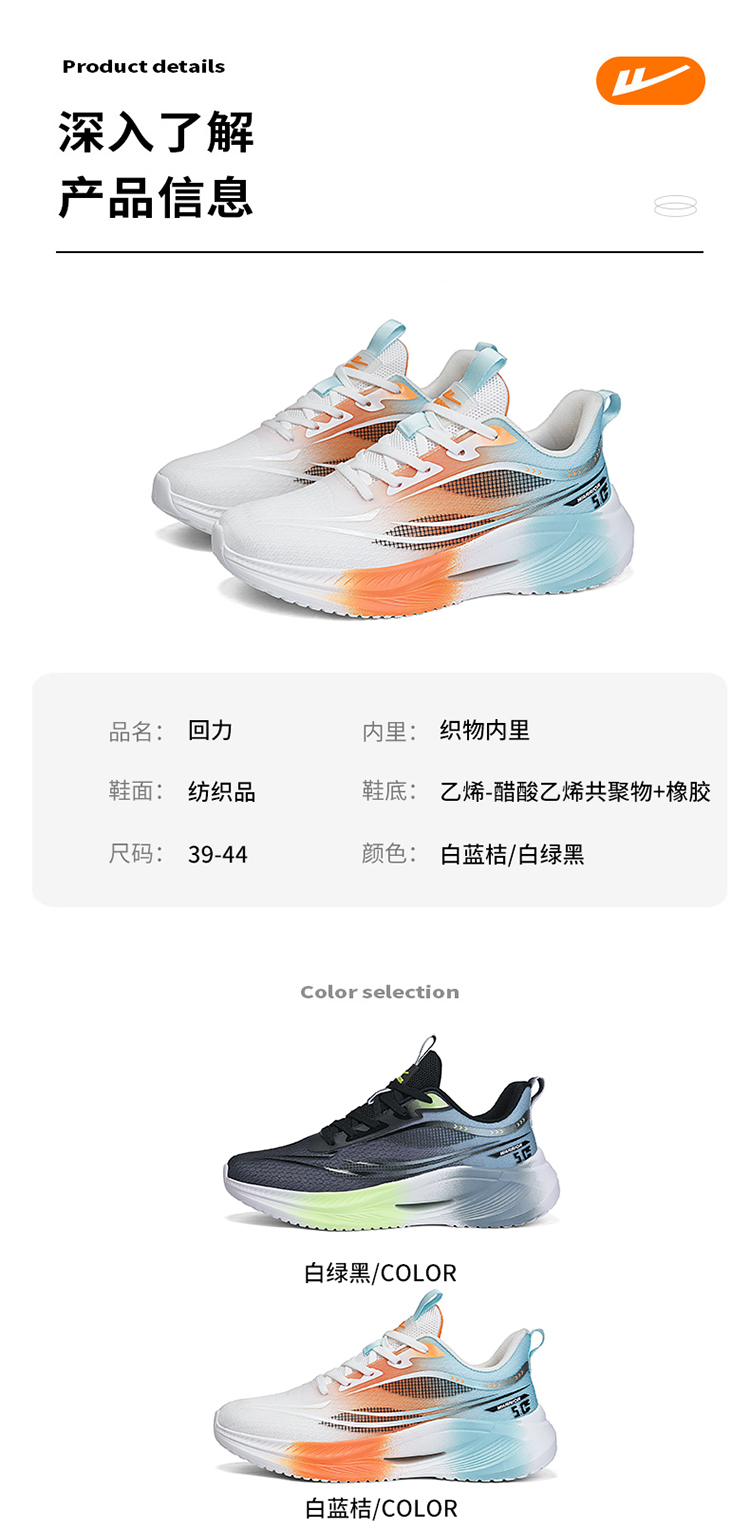 回力男鞋软底运动鞋夏季新款透气炫彩渐变厚底跑步鞋增高休闲鞋子WXY(ZA)-4595