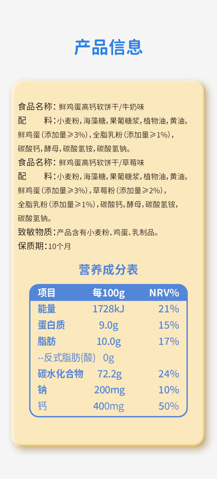 喵小侠鲜鸡蛋高钙营养儿童软饼干小零食★