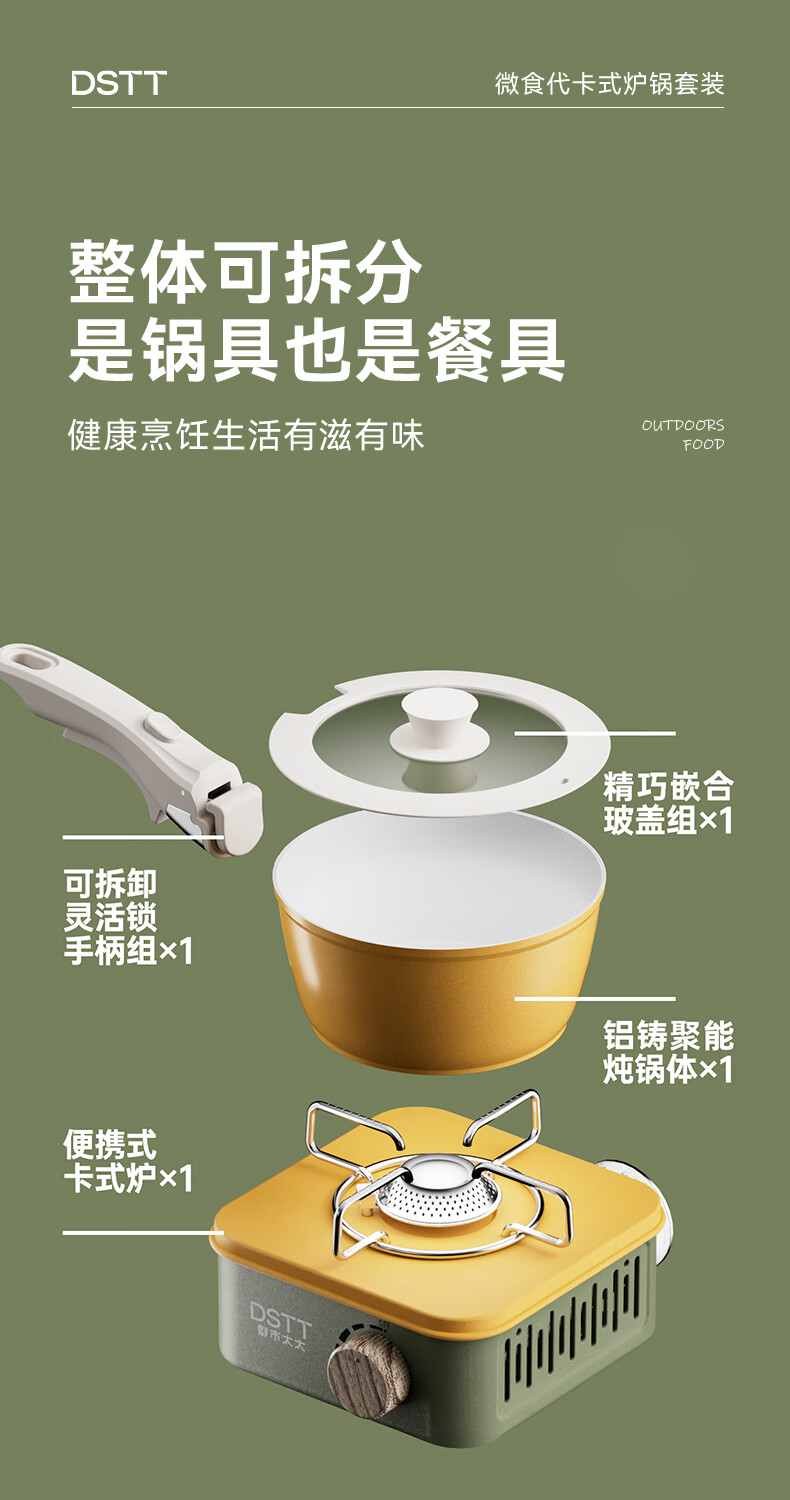 都市太太都市太太微食代便携烹饪套装便携式卡式炉汤锅组合野营烧烤必备