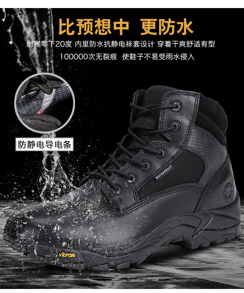 君洛克D19005中帮战术靴 防水 ,防静电,防滑,耐磨V底