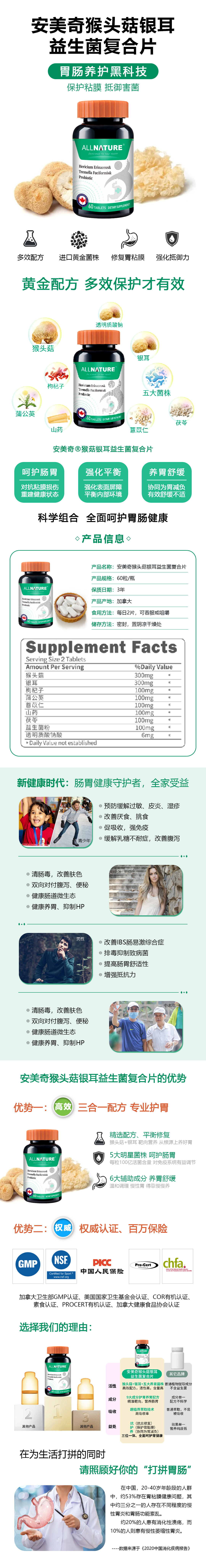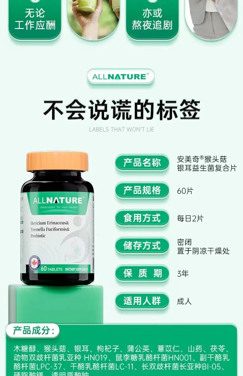 【吴远医生推荐】针对慢性胃炎 胃溃疡 猴头菇银耳益生菌复合片 60粒/瓶