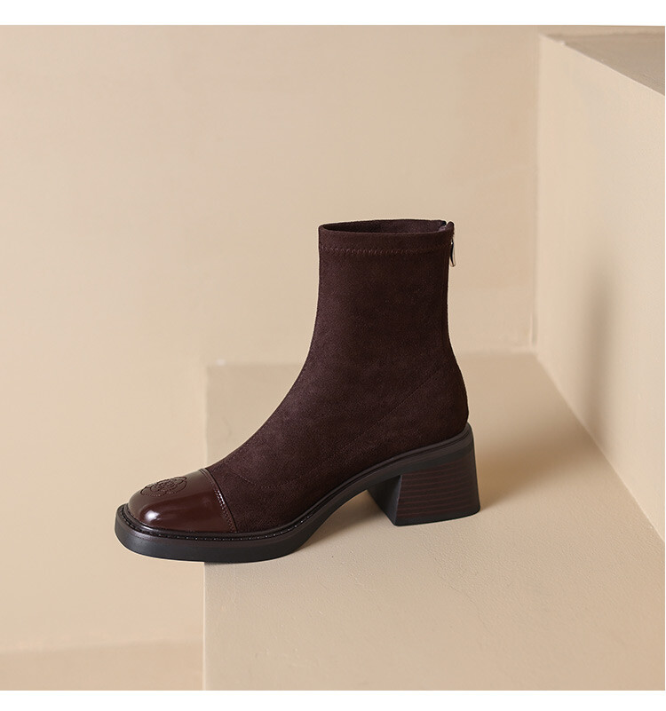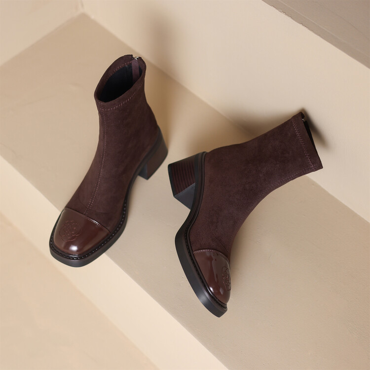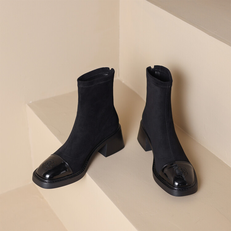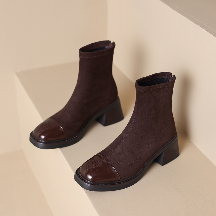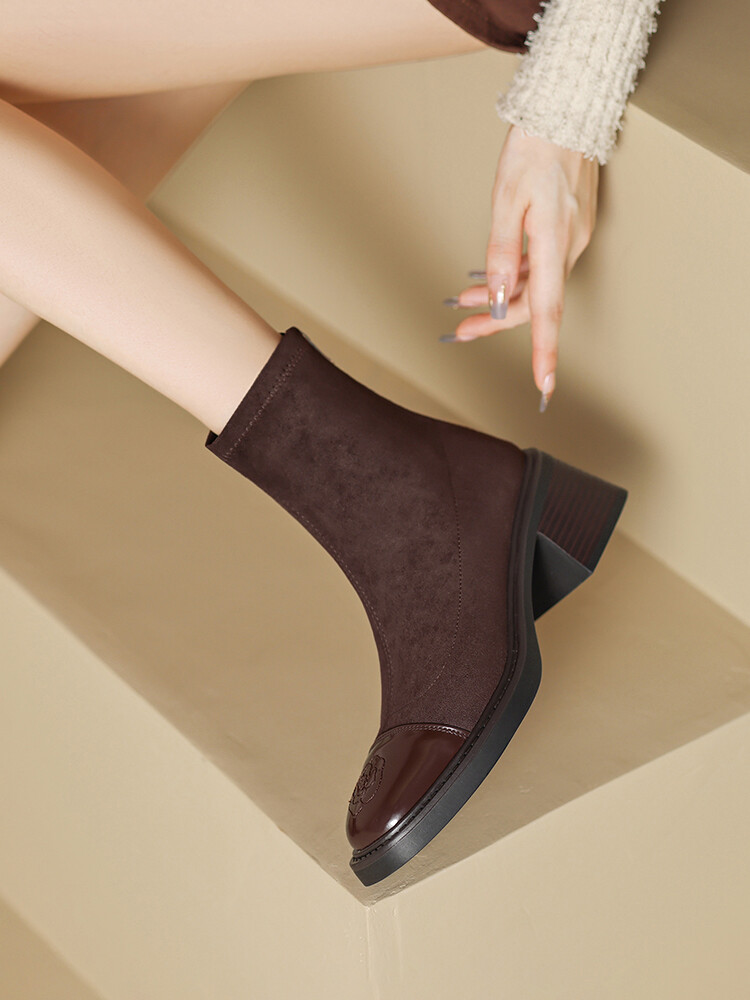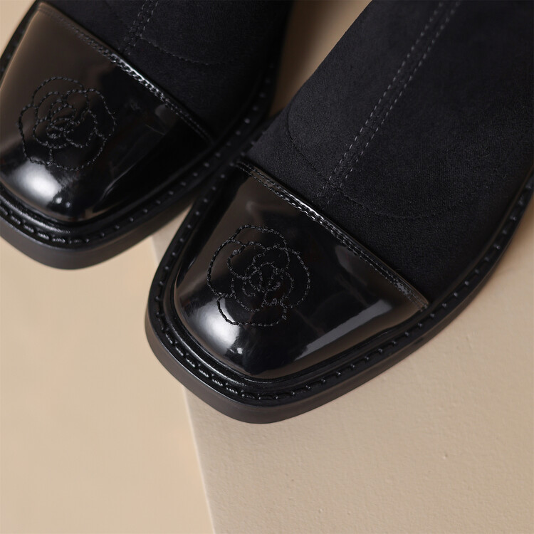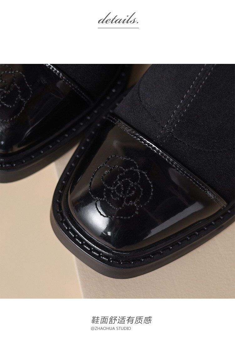 优雅个性,茶花刺绣牛皮瘦瘦靴XDD-2177F