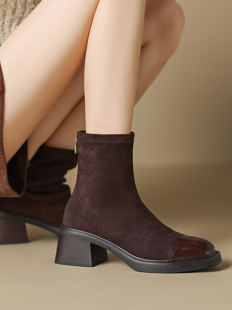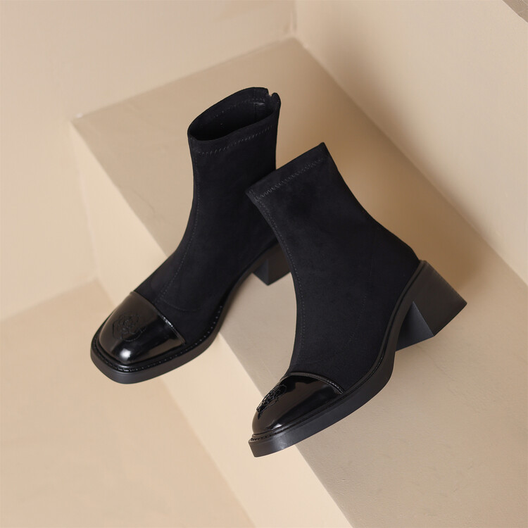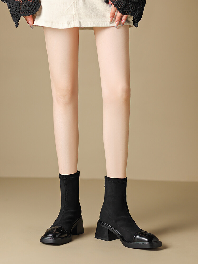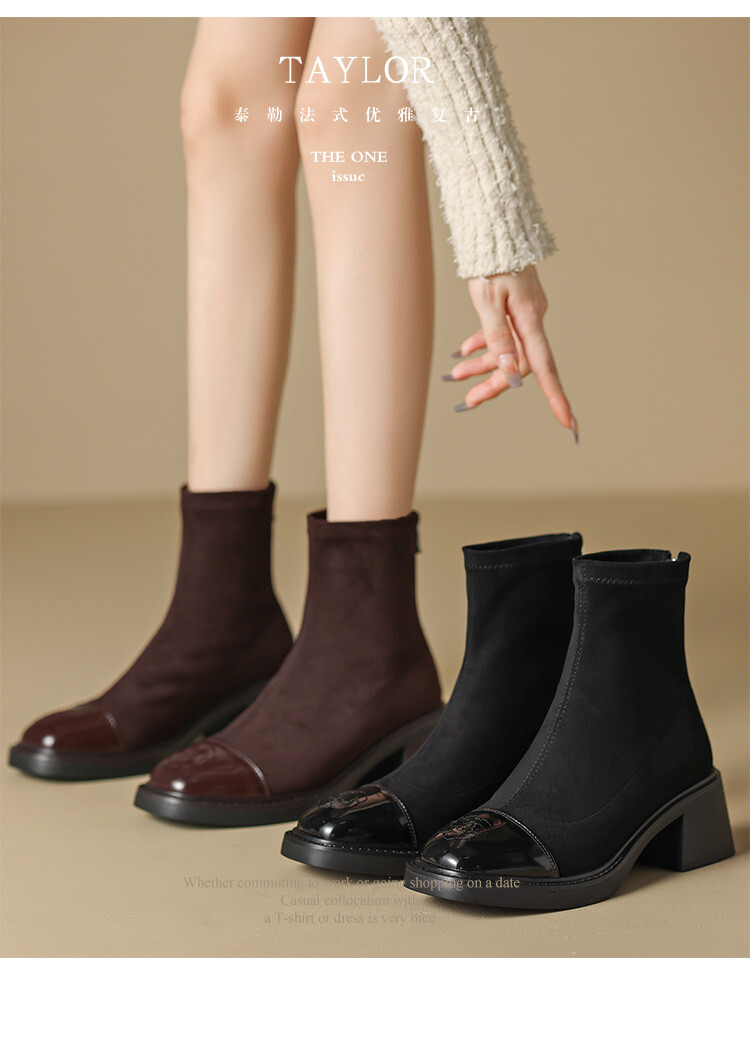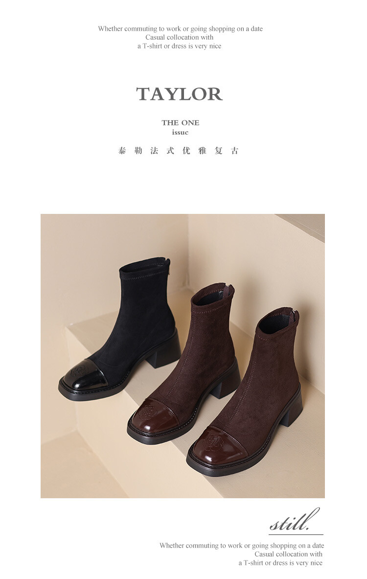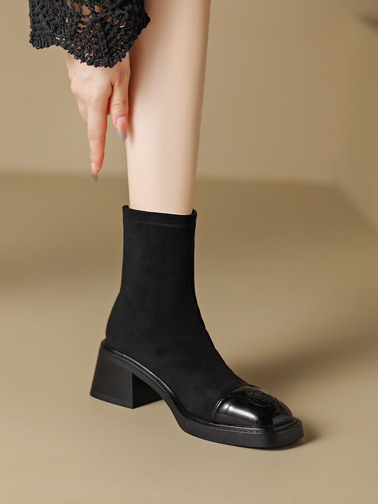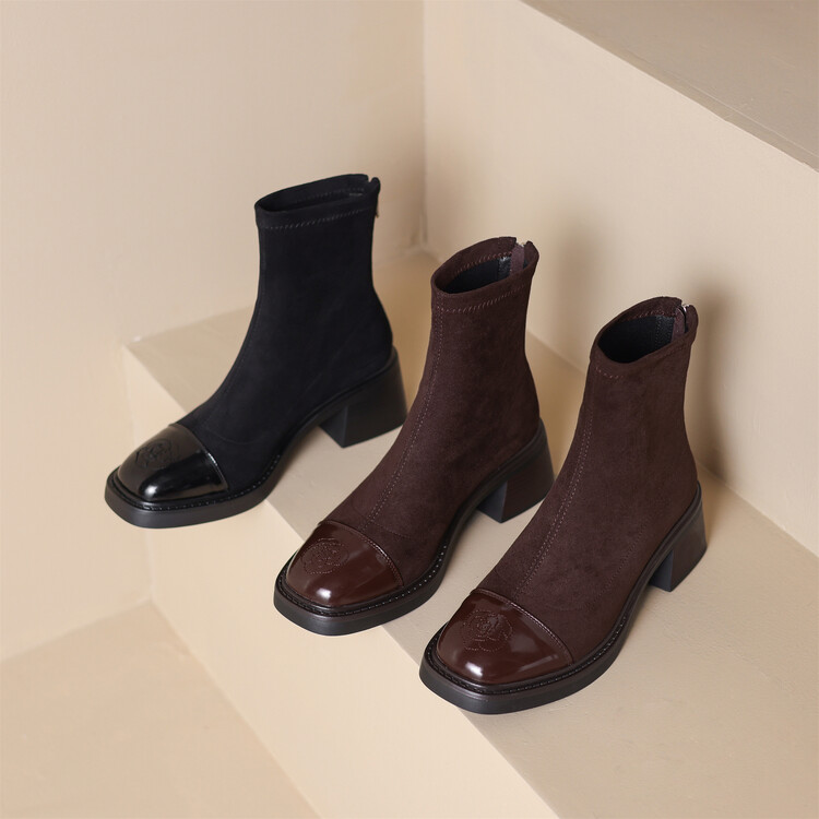 优雅个性,茶花刺绣牛皮瘦瘦靴XDD-2177F