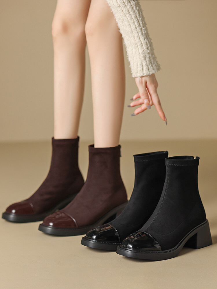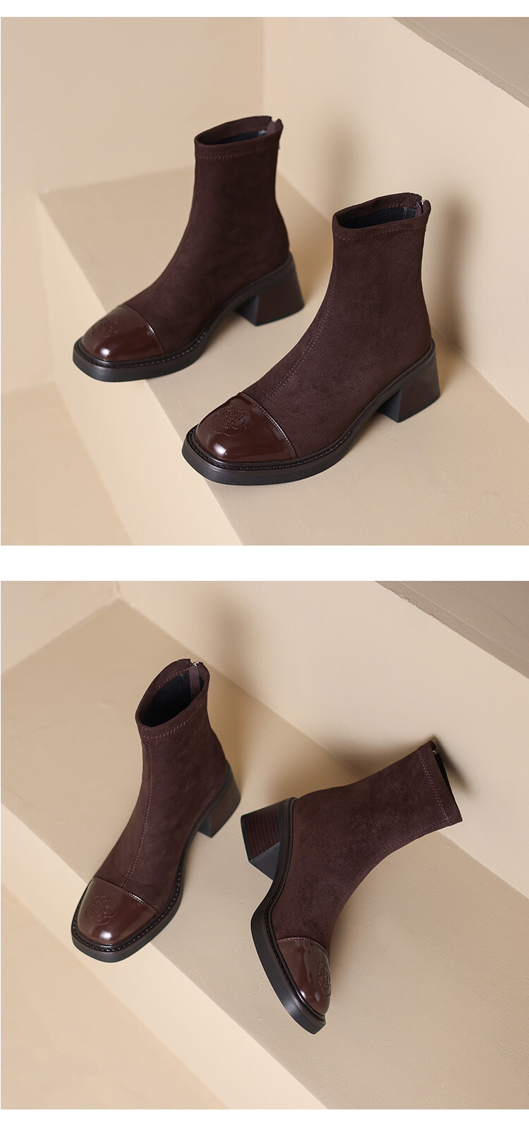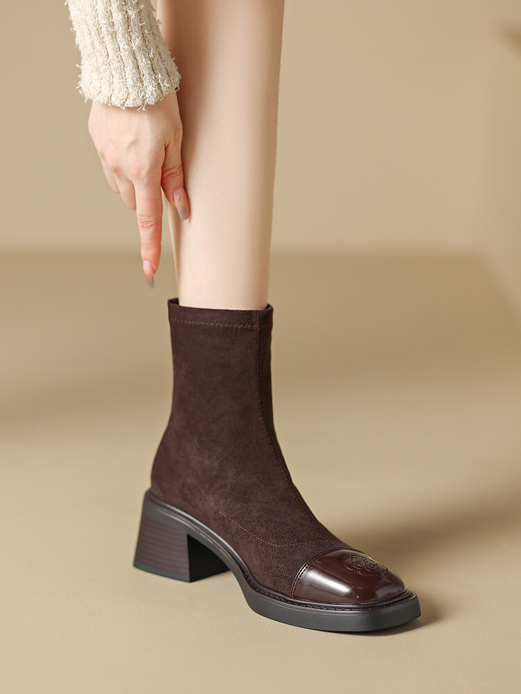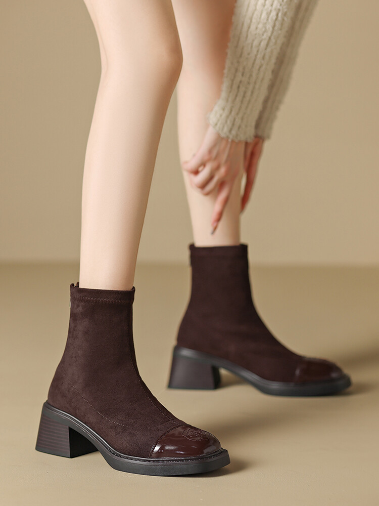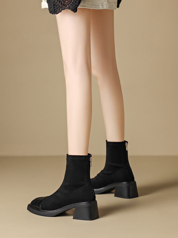优雅个性,茶花刺绣牛皮瘦瘦靴XDD-2177F