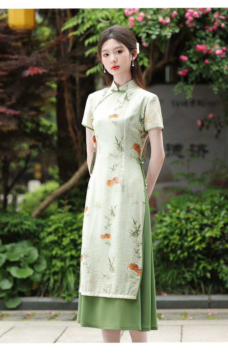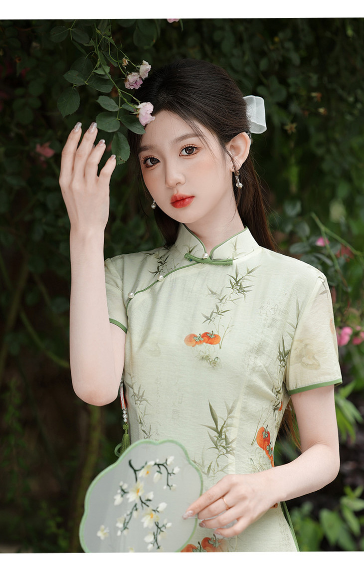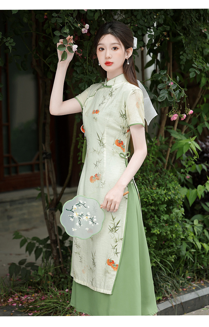 2025新款新中式年轻款少女小清新夏季日常通勤复古国风旗袍GSJ9389