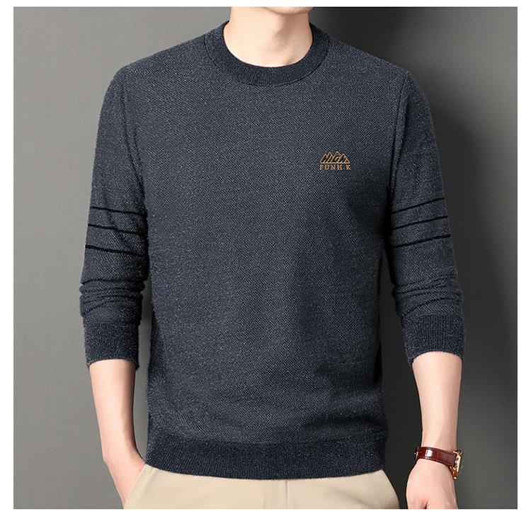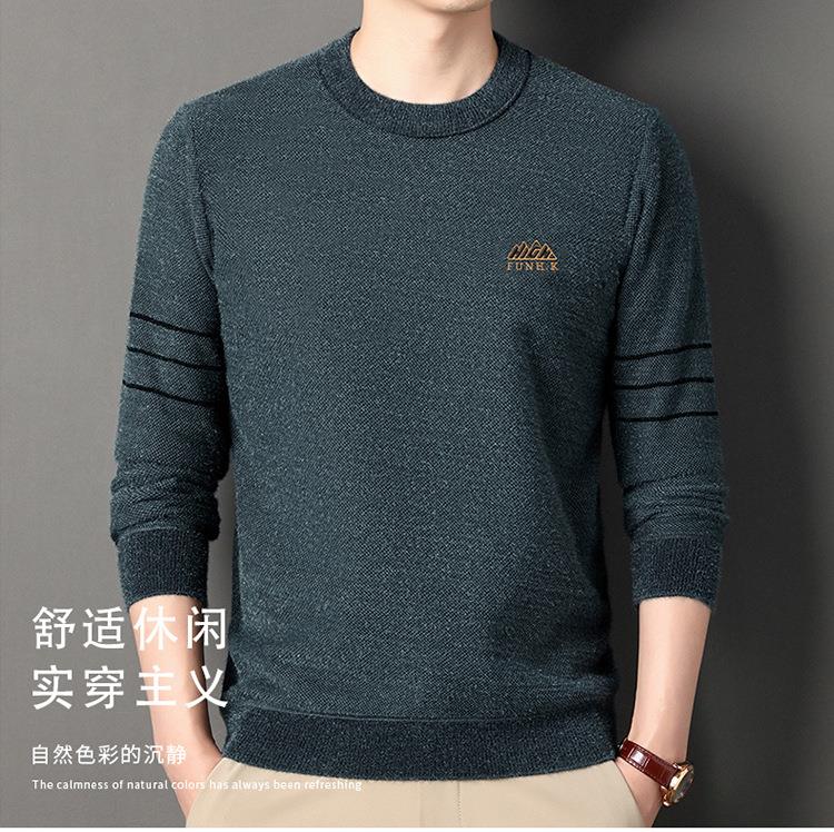 羊毛混纺雪貂绒加绒加厚毛衣男士秋冬季新款保暖圆领打底羊毛衫男