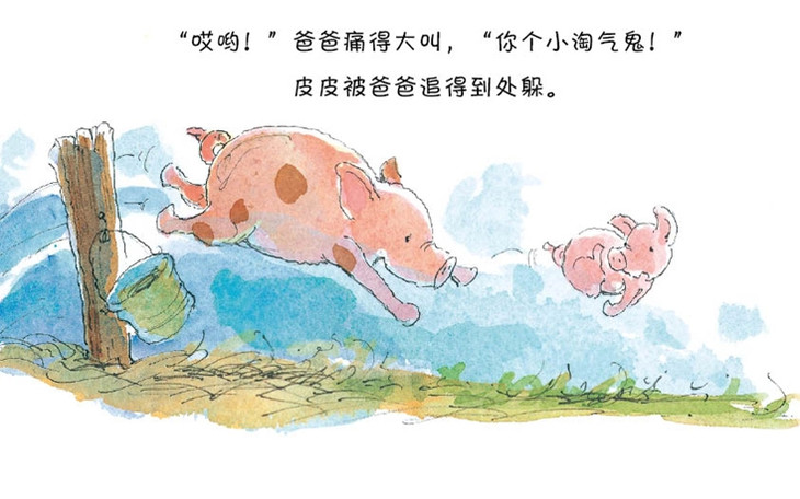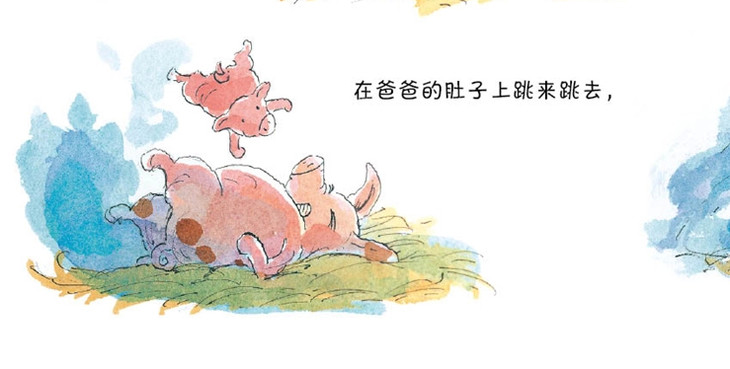 就像所有的孩子那样,皮皮猪可是很顽皮的。她喜欢在爸爸还没睡醒的时候,骑在爸爸的头上,在爸爸的肚子上跳来跳去,狠狠地咬爸爸的尾巴。就像所有的孩子那样,皮皮猪也缺乏安全感,只要妈妈不在身边,就会觉得很不安,一心只想找到妈妈,连拥抱、编花环、玩追逐游戏,这些她最喜欢做的事也不能让她高兴起来。就像所有的孩子那样,皮皮猪最渴望的是和爸爸、妈妈、奶奶待在一起,和亲人们在一起,所有的事情都变得那么有趣。皮皮猪就是这么一个顽皮又可爱的孩子,她的身上有每个孩子的影子。她的故事,也是你的故事。