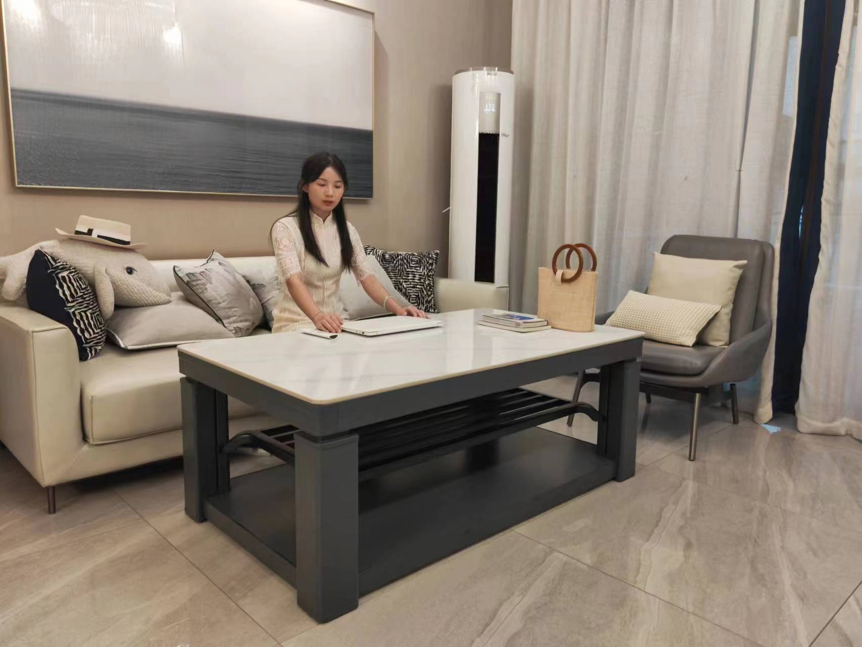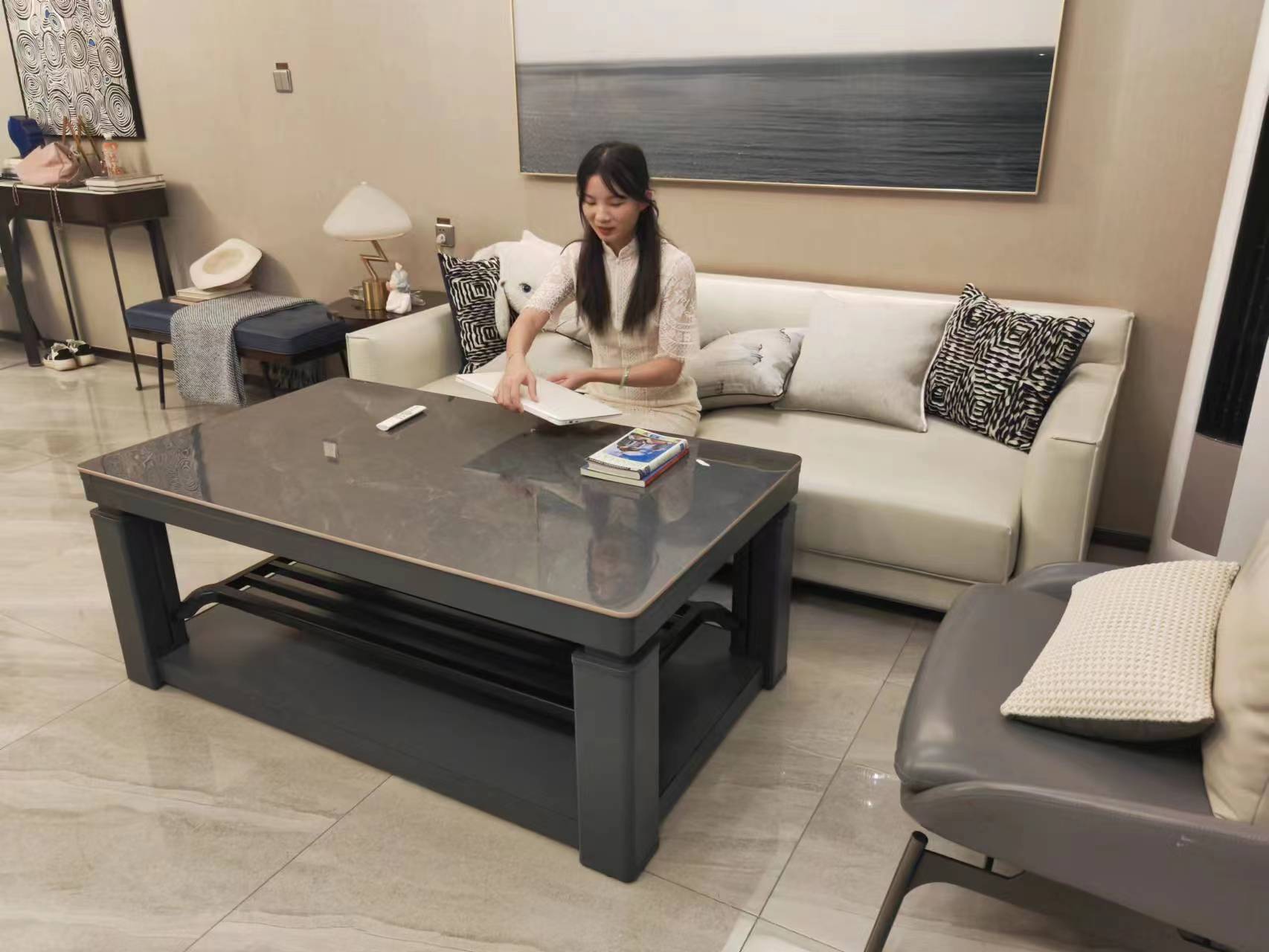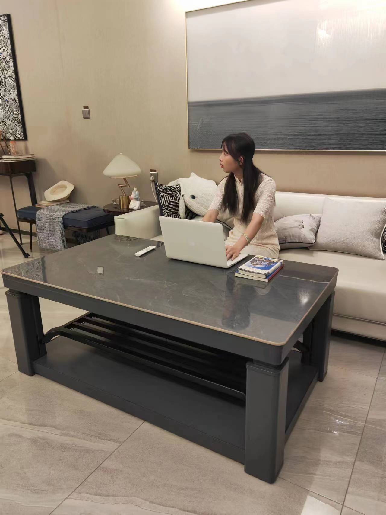 麦虹烤火桌 灰色机身 灰岩板(白色岩板)尺寸1.4x0.8m H23