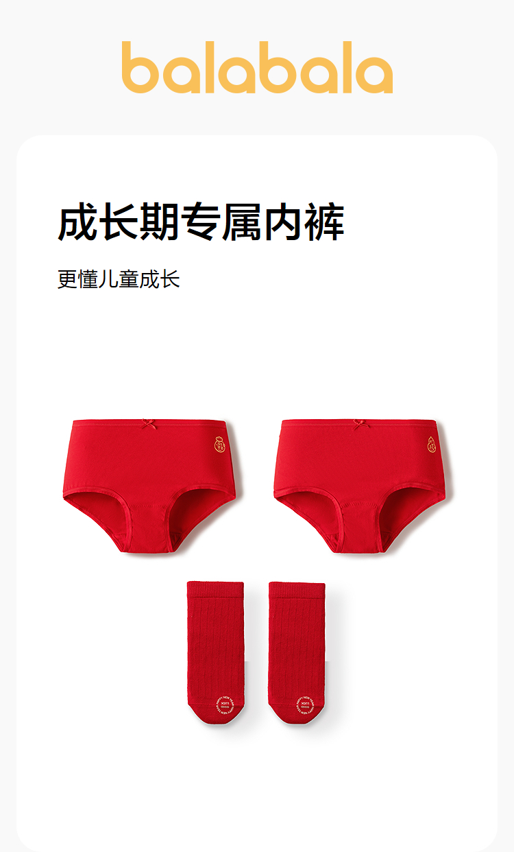 【balaOne】巴拉巴拉儿童内裤袜子套装女童三角短裤抗菌裆不夹PP