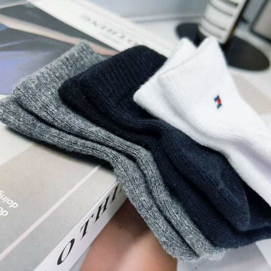 经典的三个色 最抢手的中筒袜子, 秋冬季节非常合适 简约不简单,紧密螺旋纹设计防脱落不勒脚 高品质配色橡筋,弹性适中,袜口贴合不紧绷 颜色,使用的是令你安心的环保色。永远不过时的经典色,简约内敛。