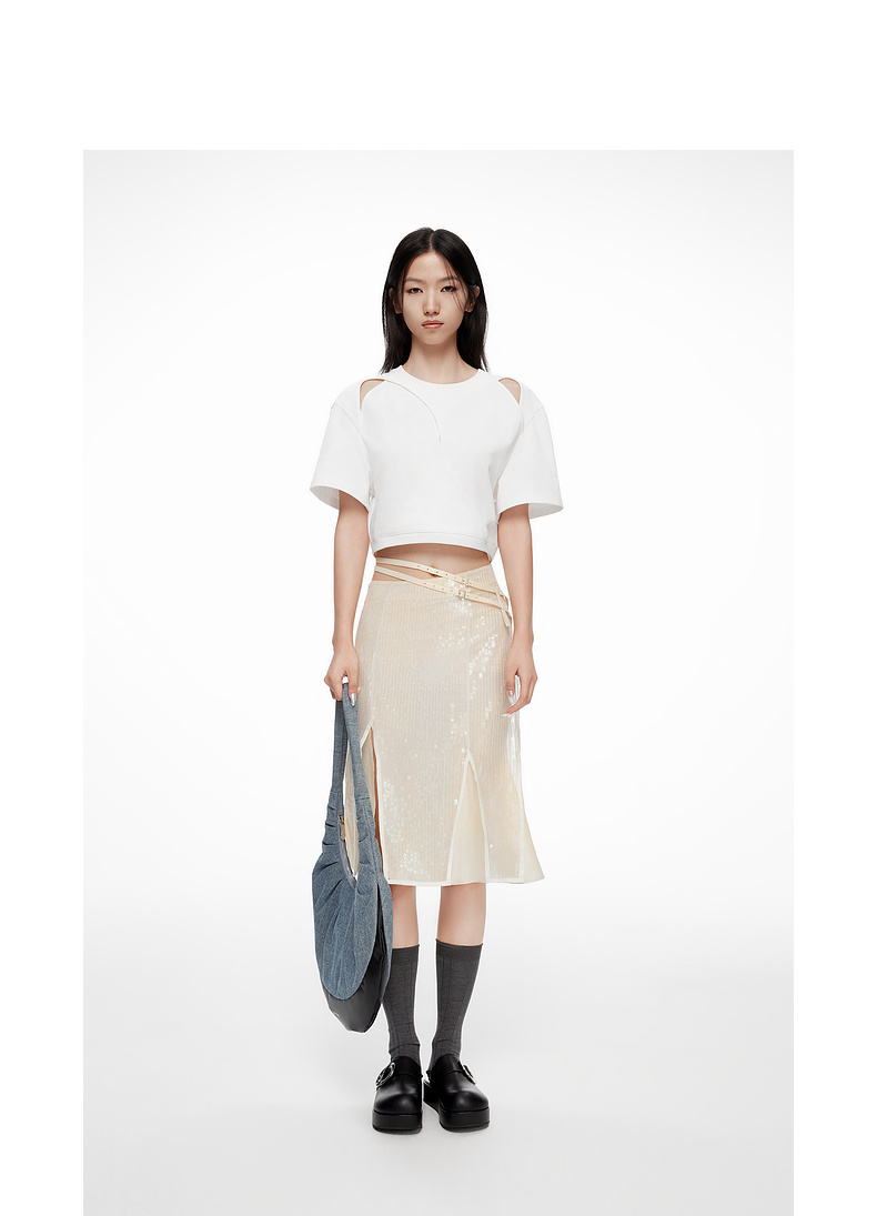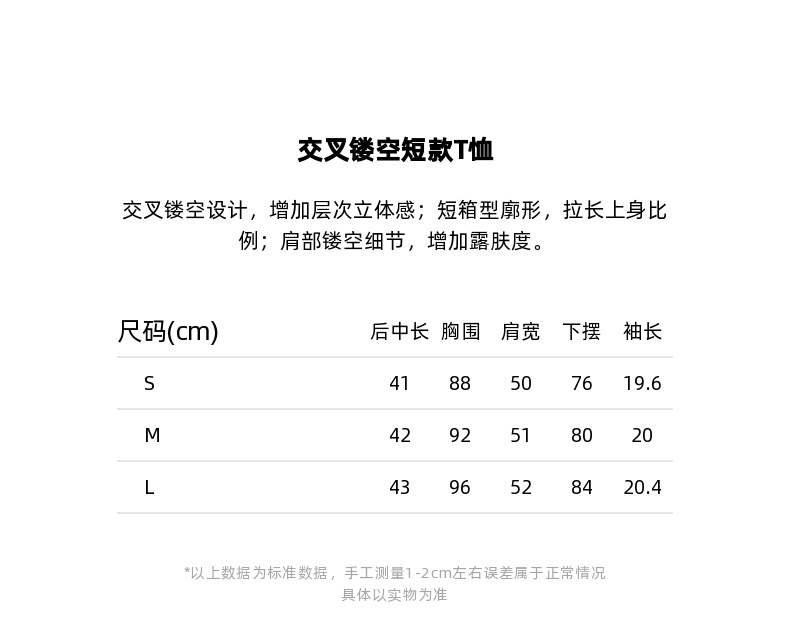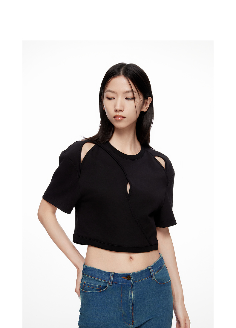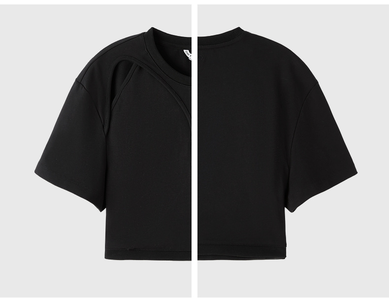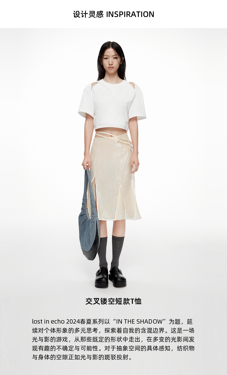 [断码]lost in echo2024春夏新品设计师品牌交叉镂空纯色短款T恤上衣