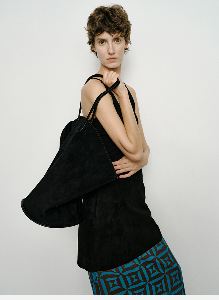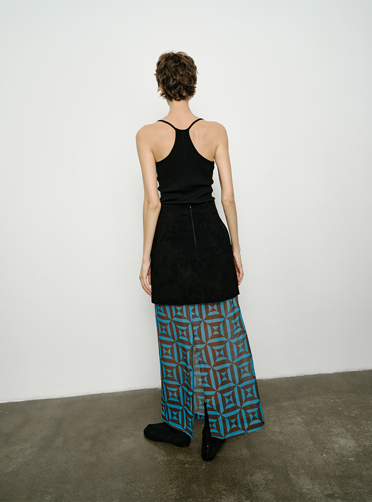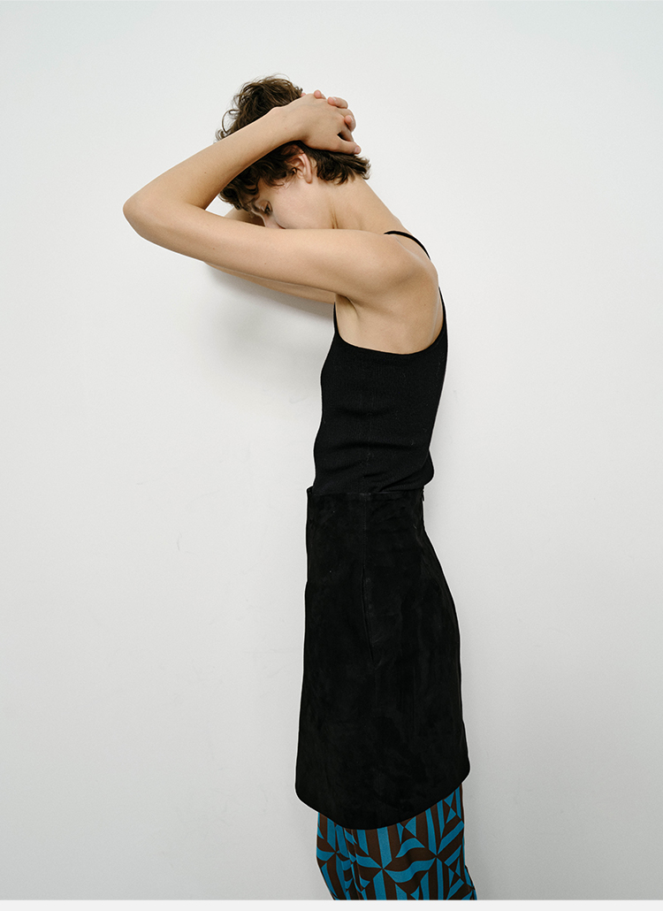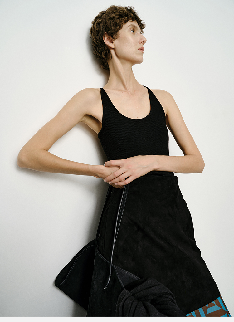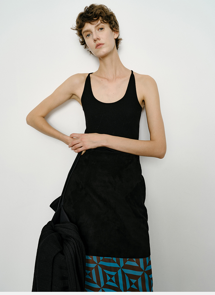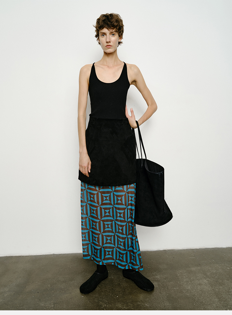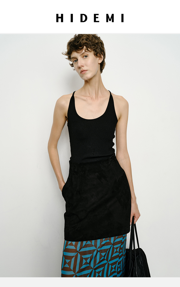 HIDEMI黑色简约大口袋设计感半身A字长裙