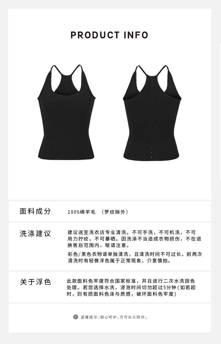 HIDEMI 澳洲美利奴羊毛针织背心打底上衣