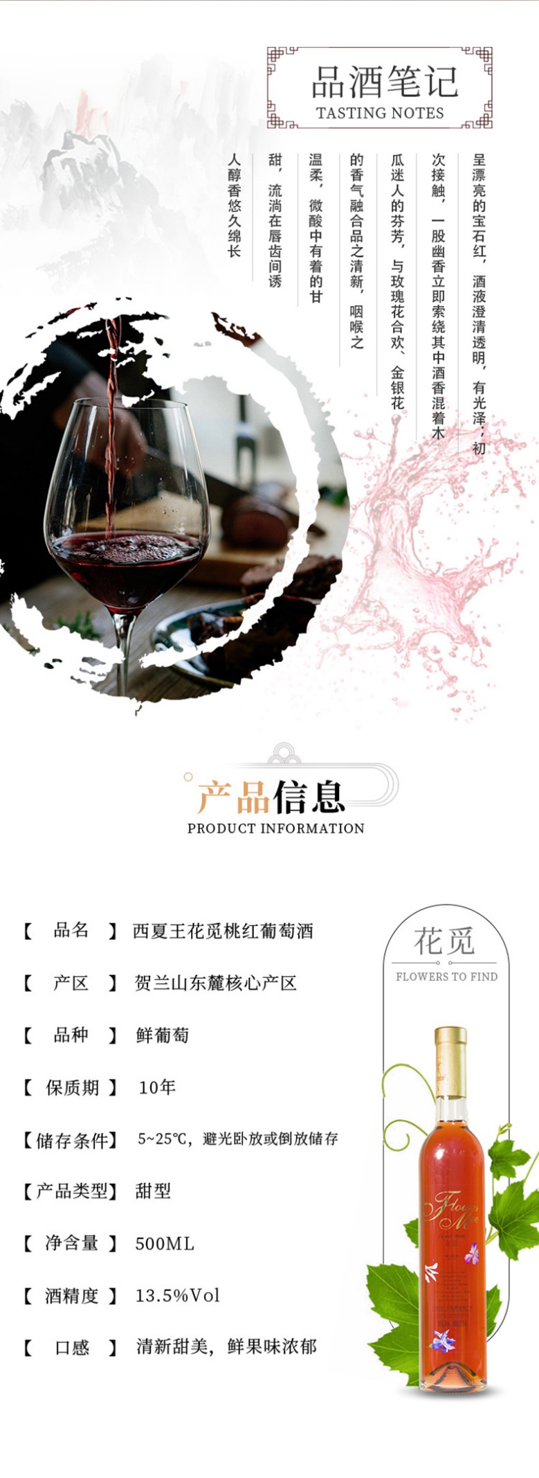 【中国农垦】西夏王 宁夏贺兰山东麓 500ml/瓶女士甜型葡萄酒 花觅系列 桃红