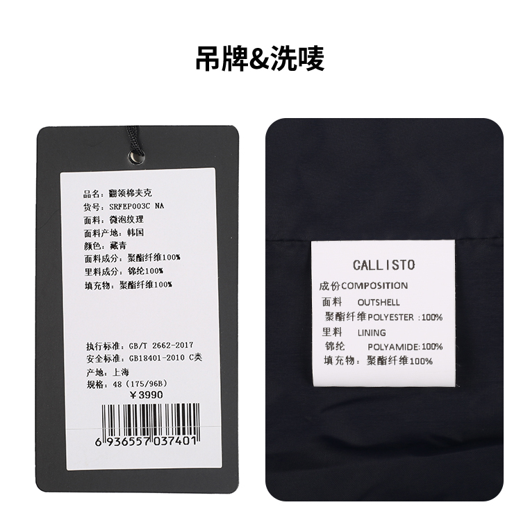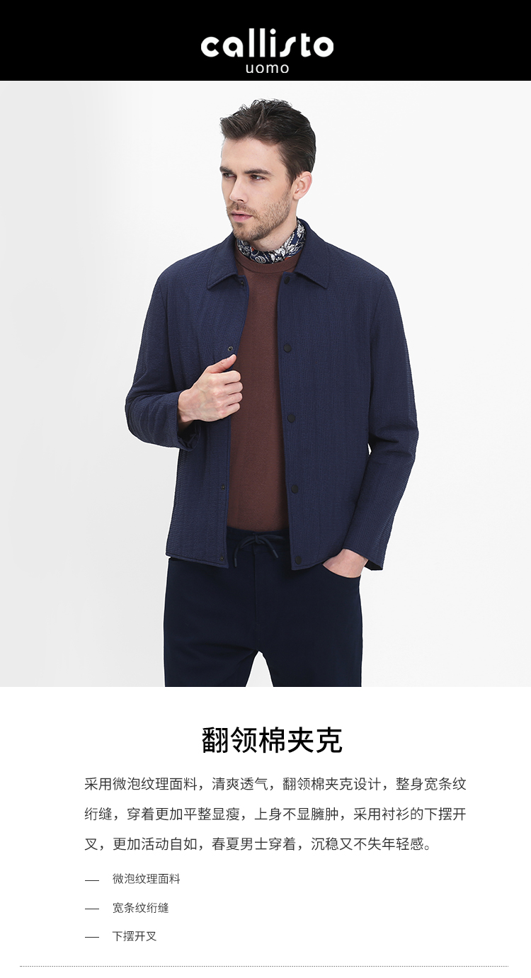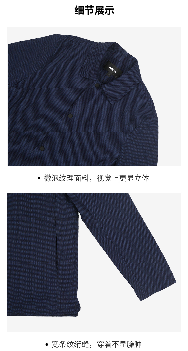 callisto藏青微泡纹理翻领棉夹克 SRFEP003C