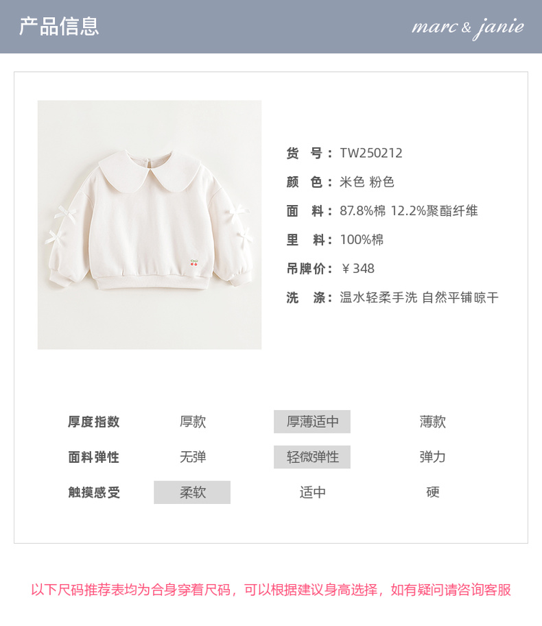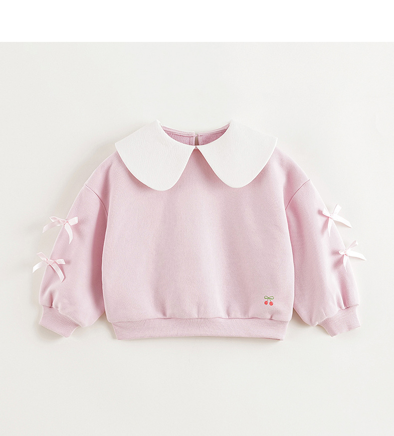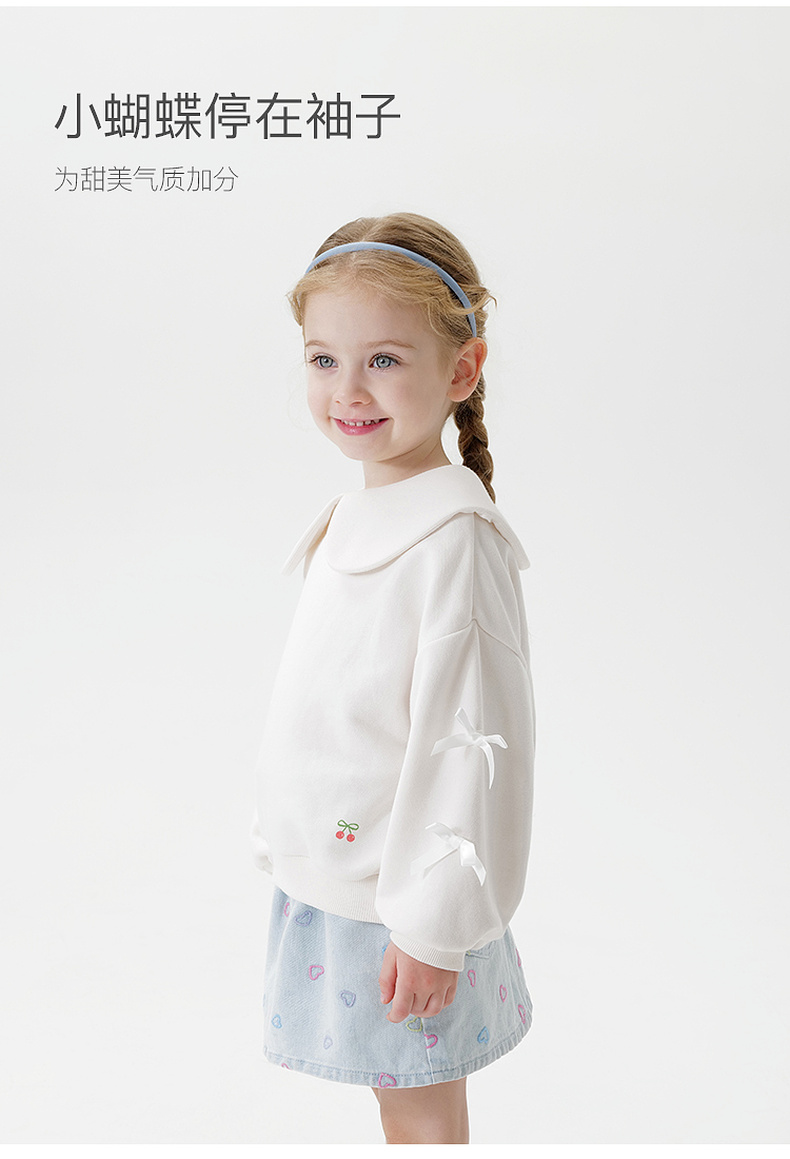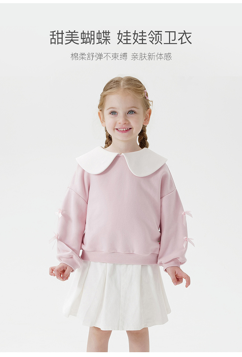 马克珍妮女童甜美蝴蝶结娃娃领卫衣宝宝上衣2025年春装新品250212