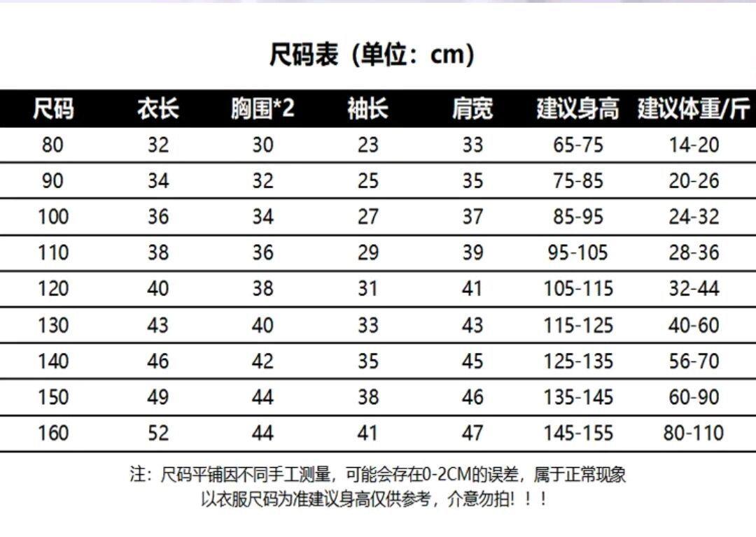 | 尺码: | 80-160详见尺码表 | |