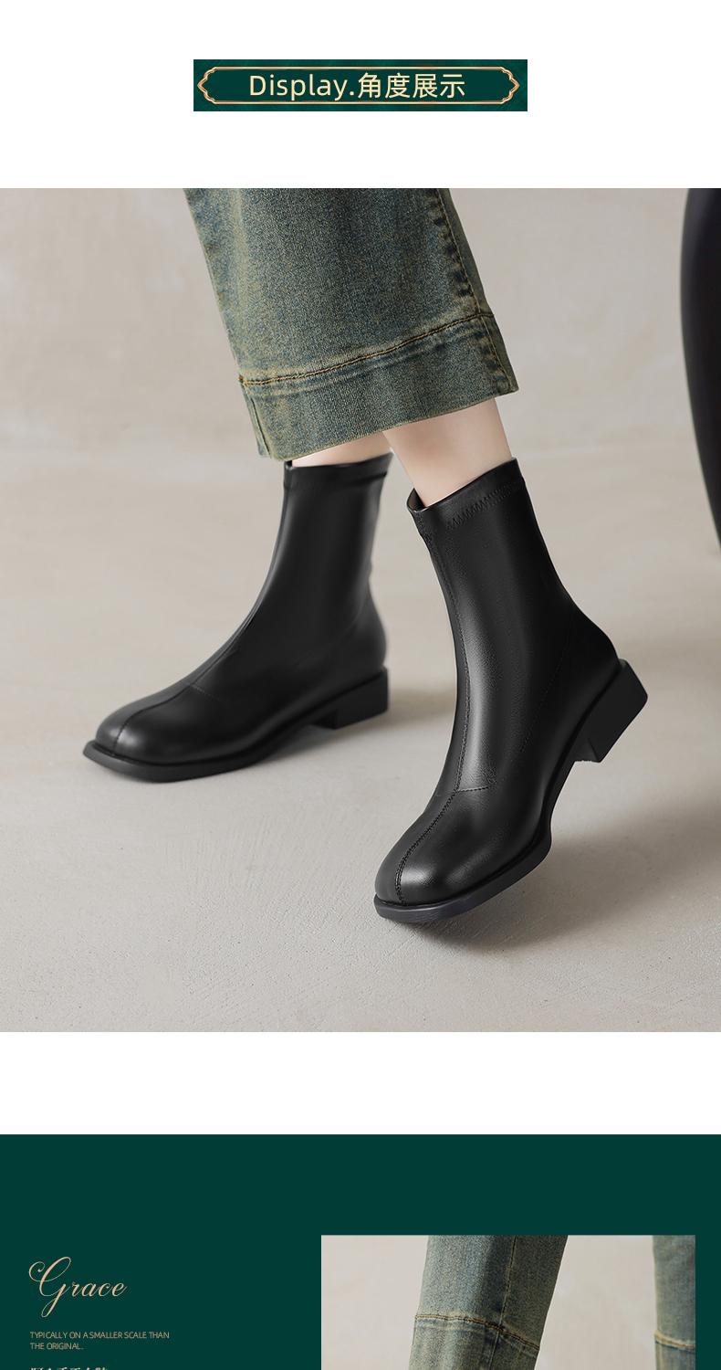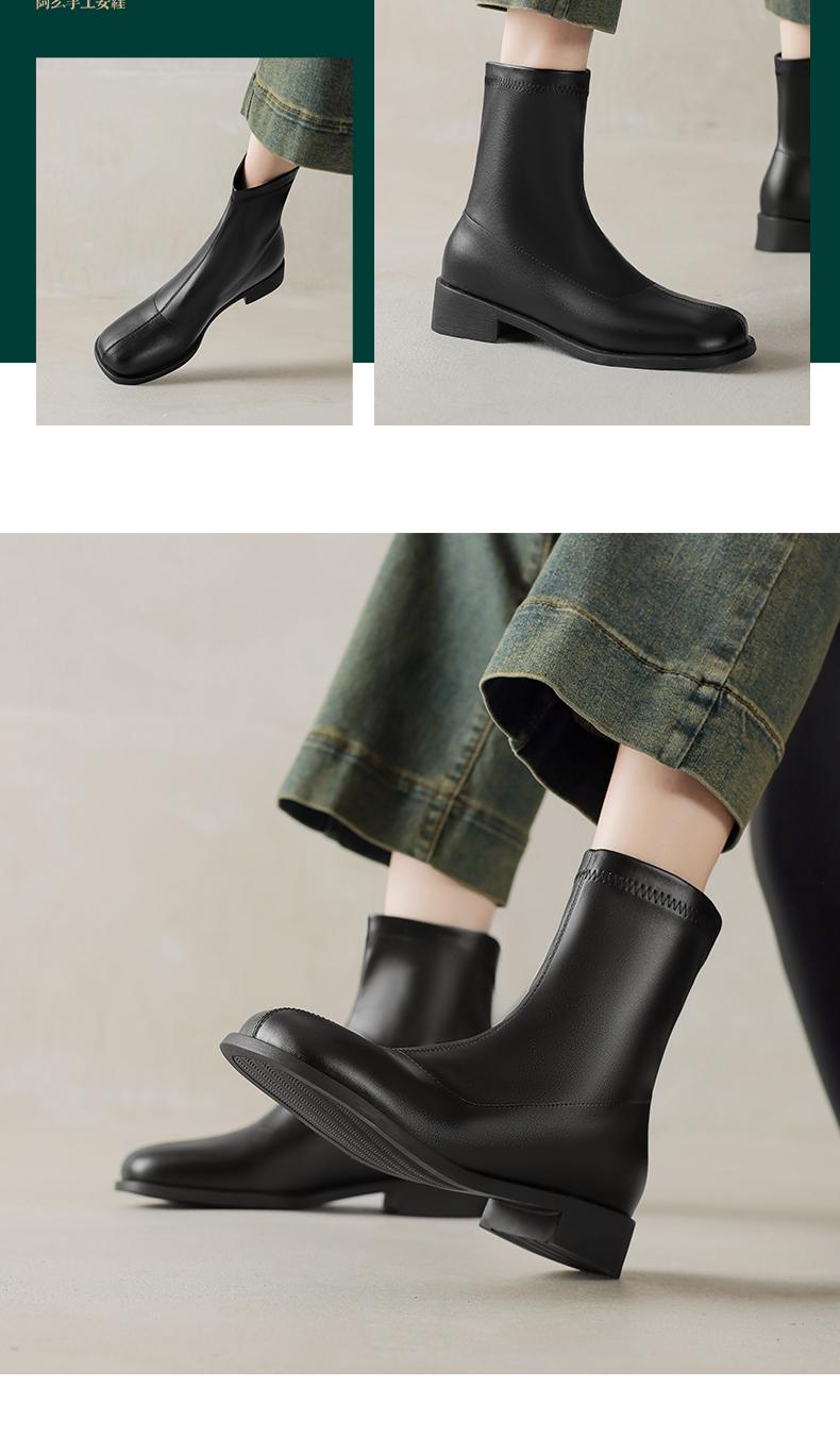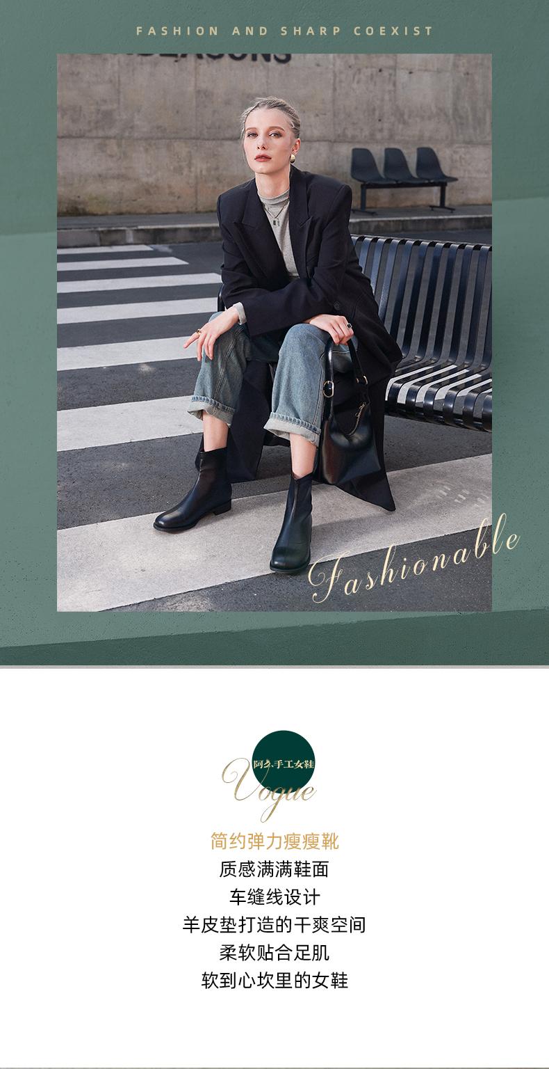 阿么手工女鞋【羊皮垫】显瘦黑色短靴2025冬季新款弹力瘦瘦靴女3CM