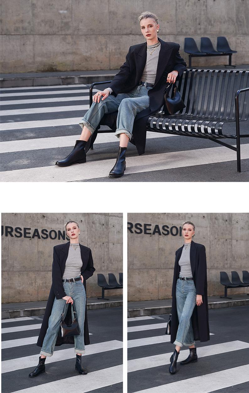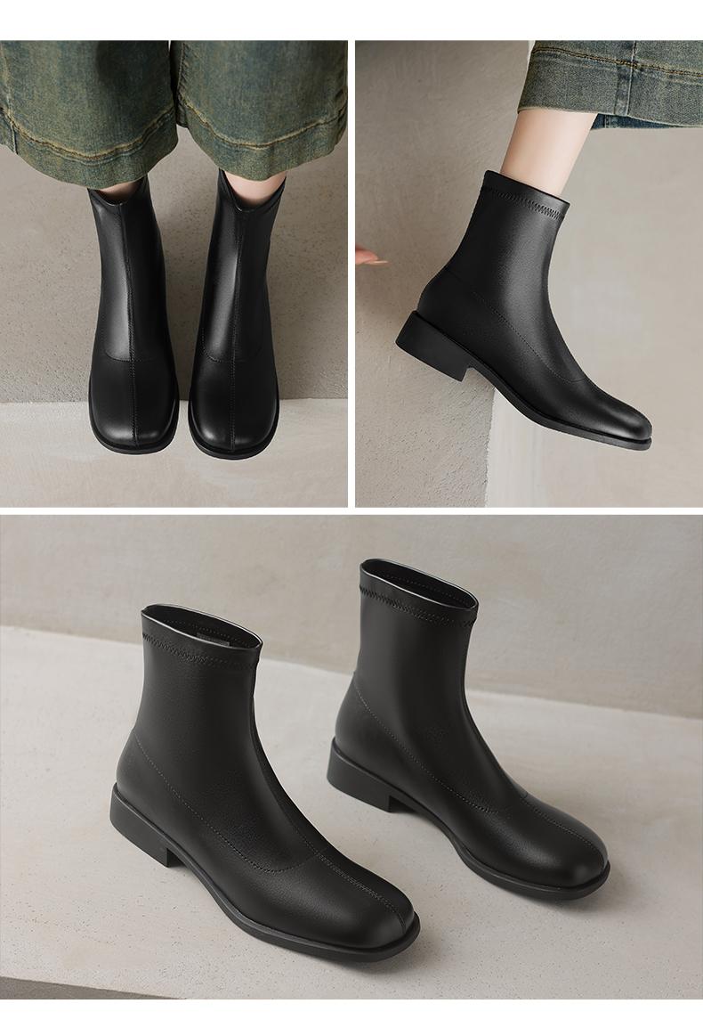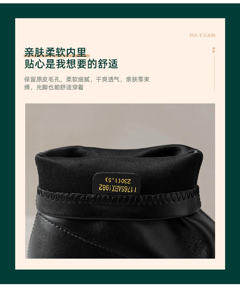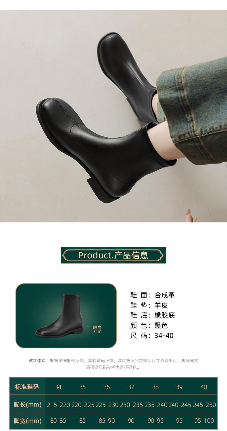 阿么手工女鞋【羊皮垫】显瘦黑色短靴2025冬季新款弹力瘦瘦靴女3CM