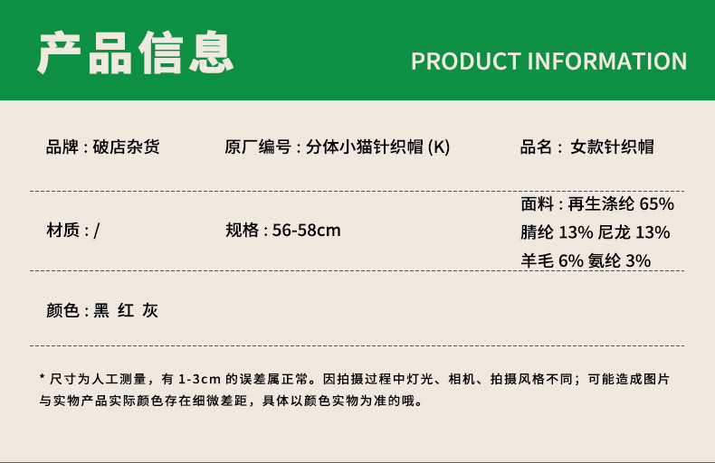 俏皮百搭分体小猫针织帽-纪念日百货门店同款166694823