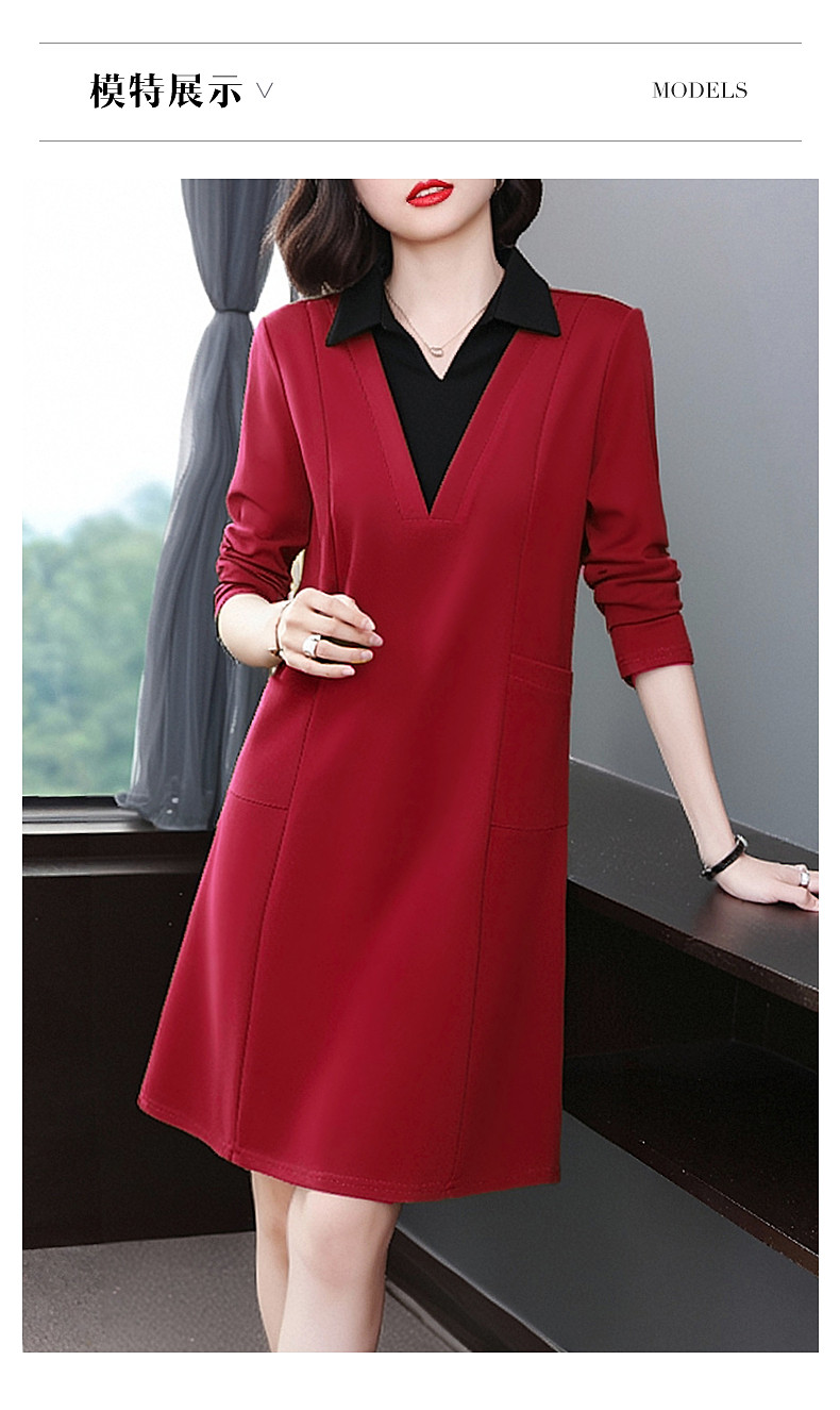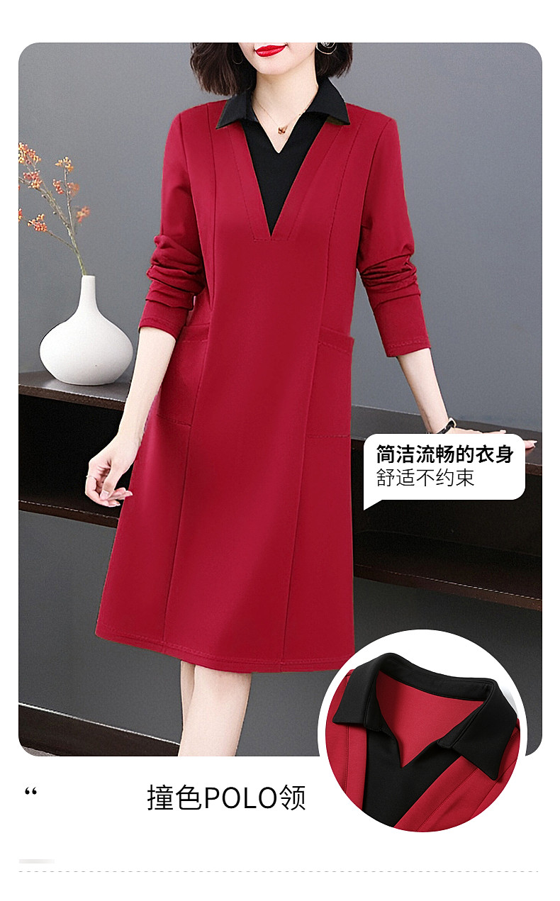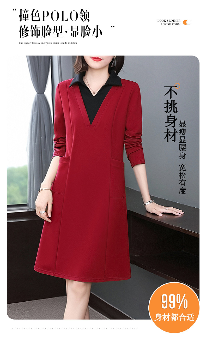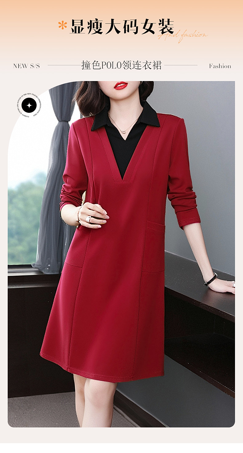 圣诞长袖红色连衣裙女秋冬2026新款大码女装高级感polo衫翻领裙子
