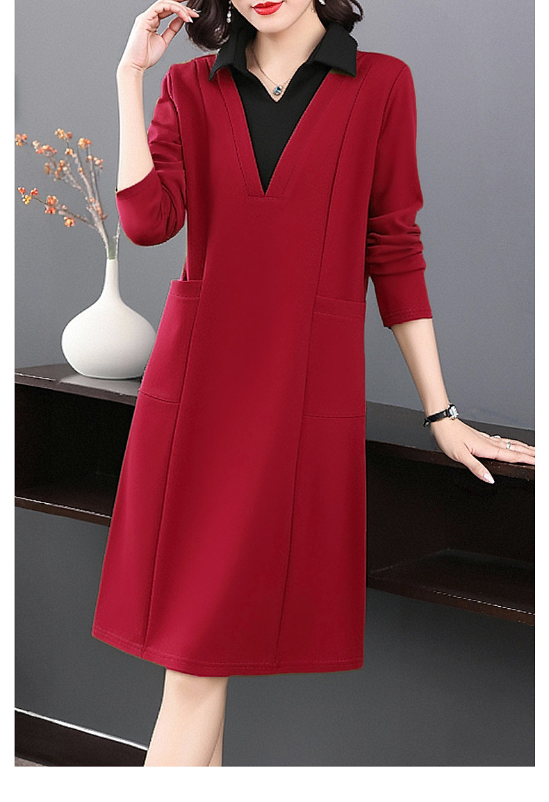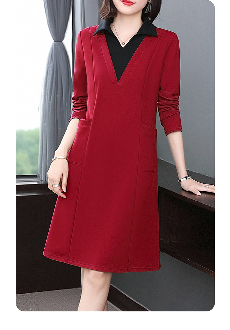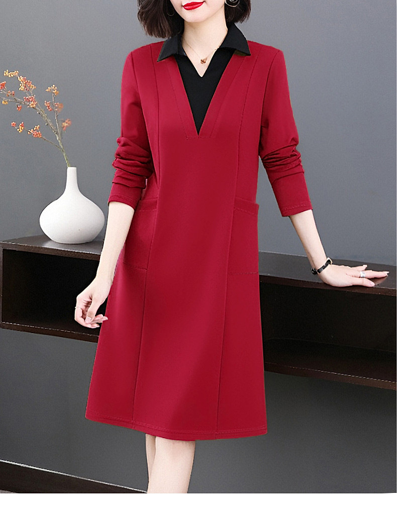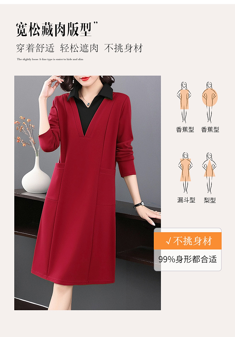 圣诞长袖红色连衣裙女秋冬2026新款大码女装高级感polo衫翻领裙子