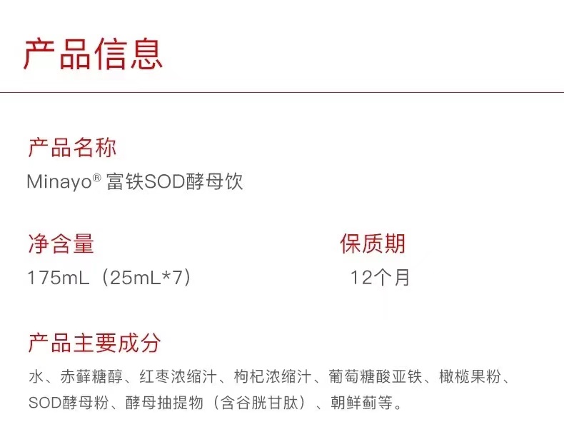 美那有铁SOD酵母饮7瓶/盒