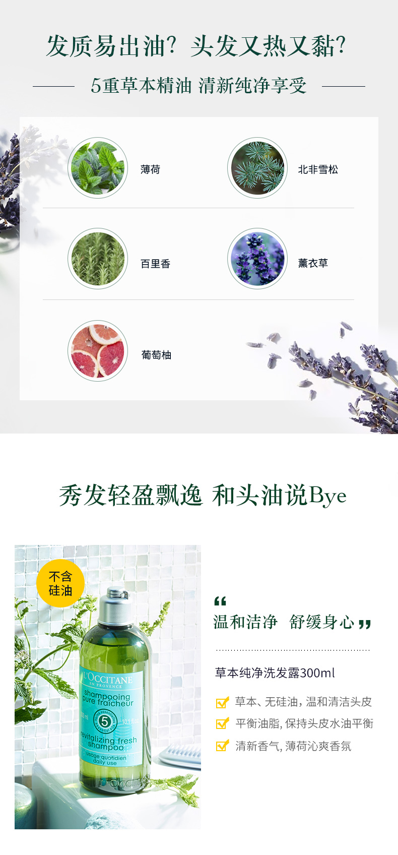 L'OCCITANE欧舒丹 草本香菁纯纯净洗发露
