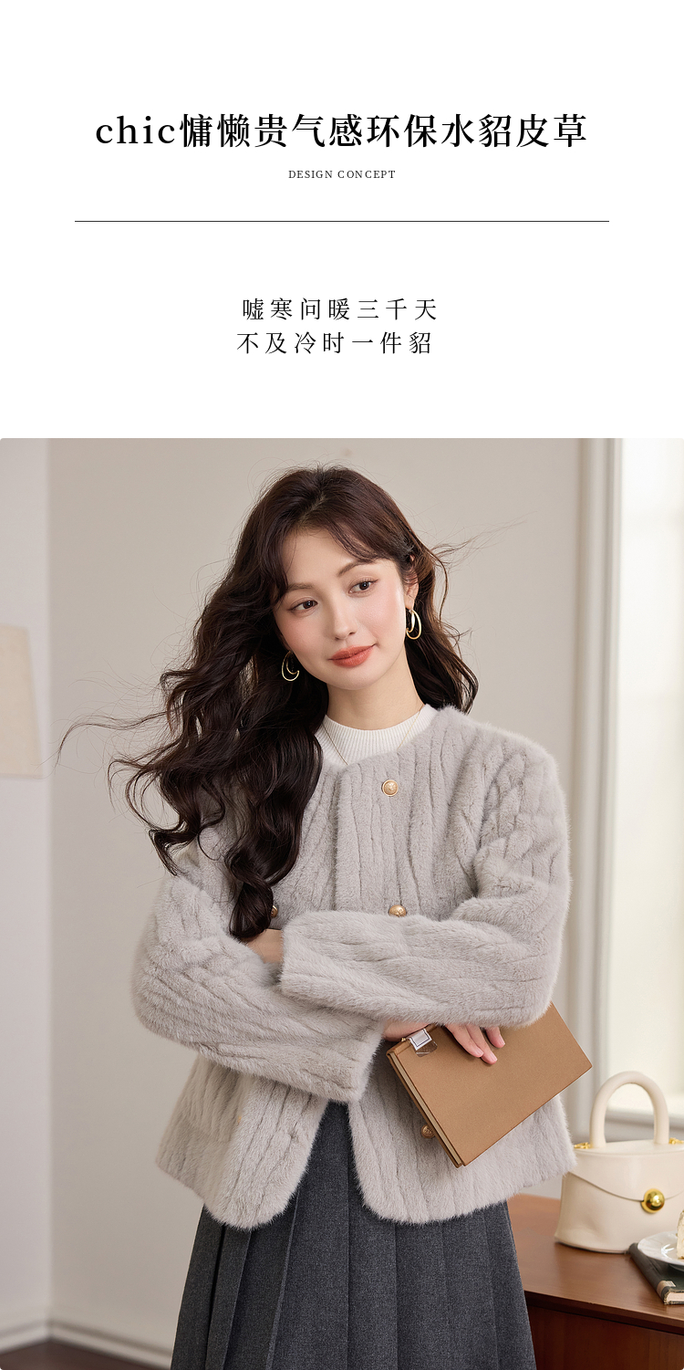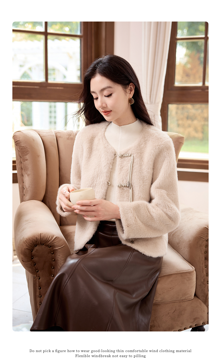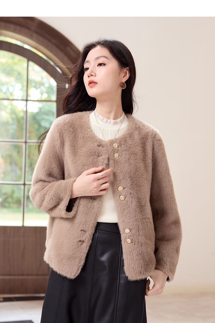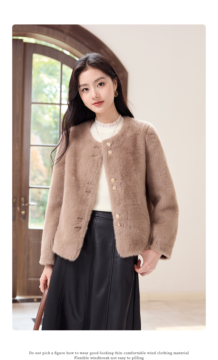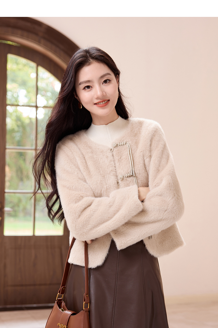 【年终特卖】熙世界皮毛一体毛绒外套女短款小个子冬季仿水貂毛皮草毛茸茸上衣