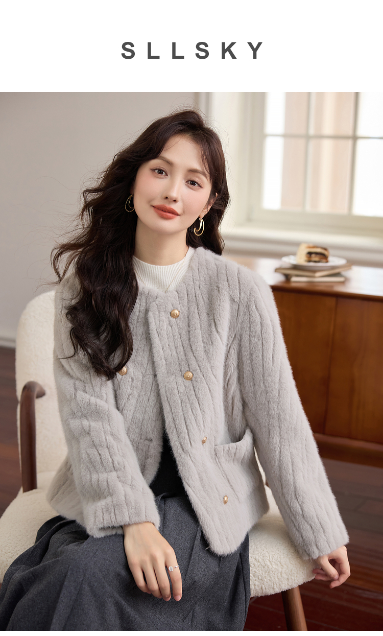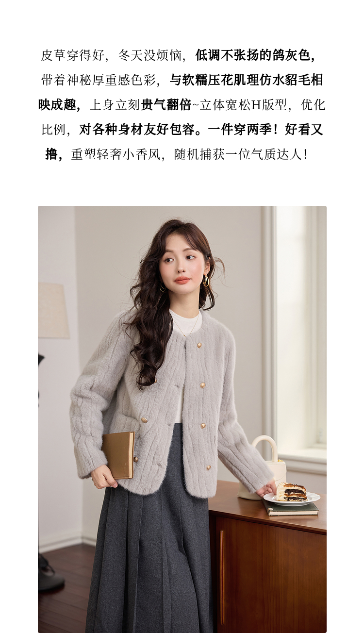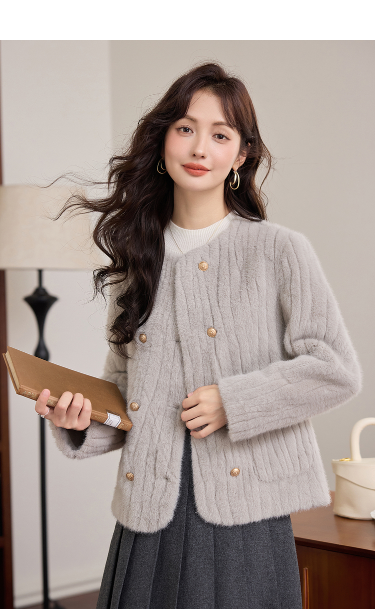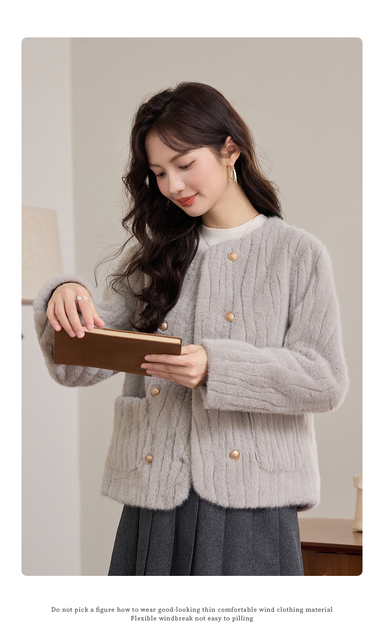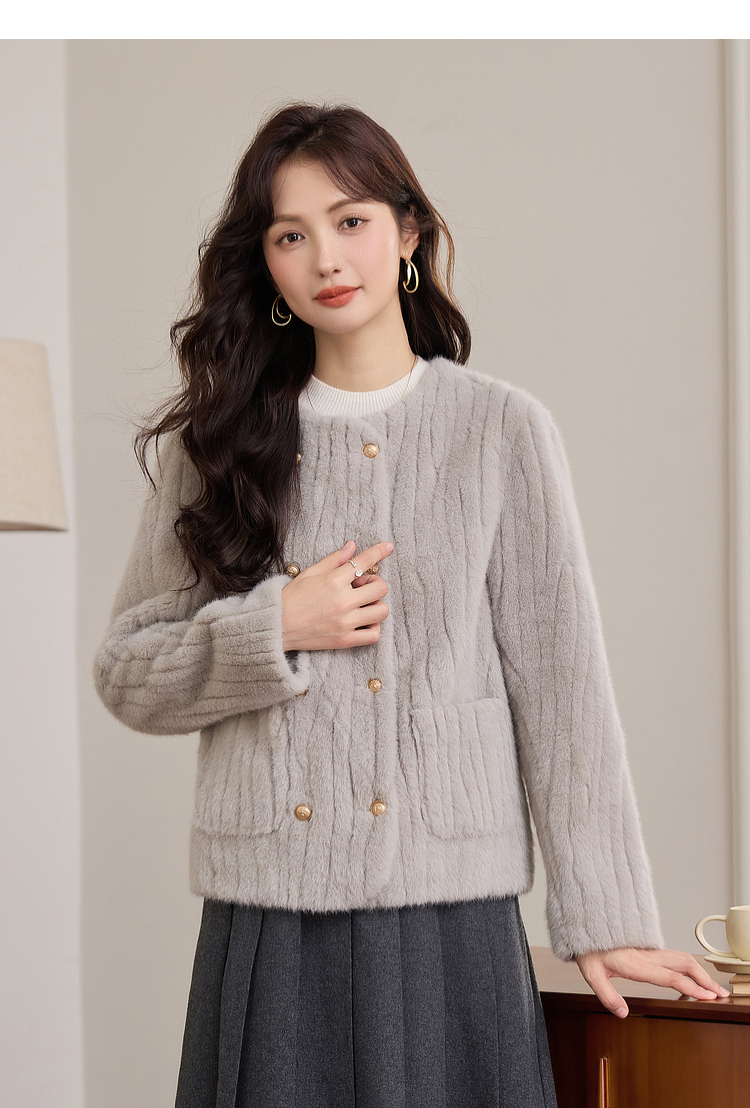 【年终特卖】熙世界皮毛一体毛绒外套女短款小个子冬季仿水貂毛皮草毛茸茸上衣