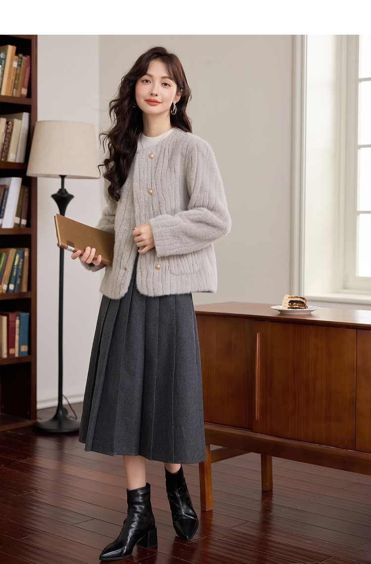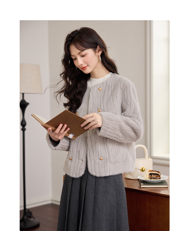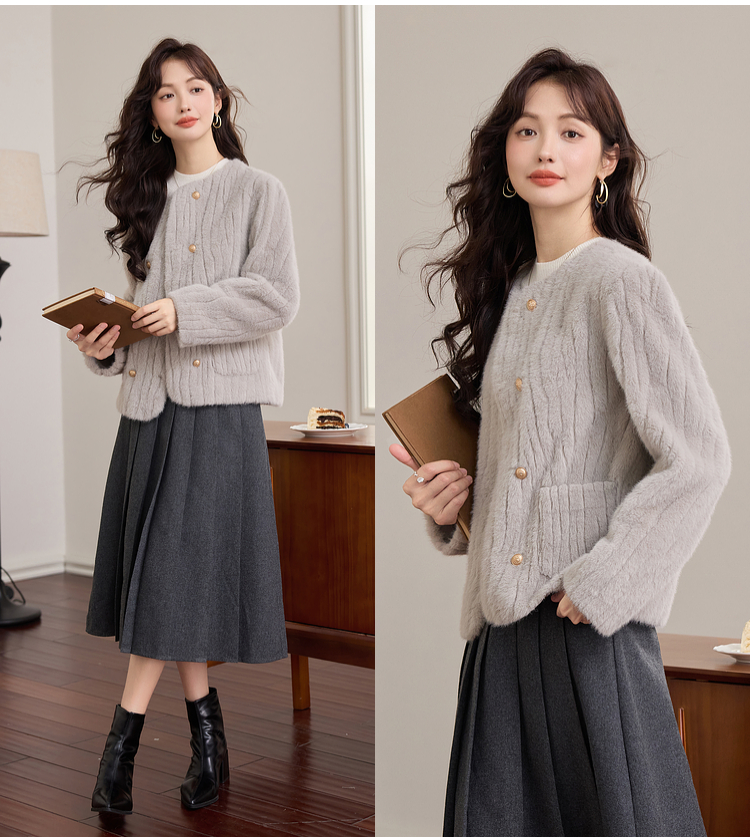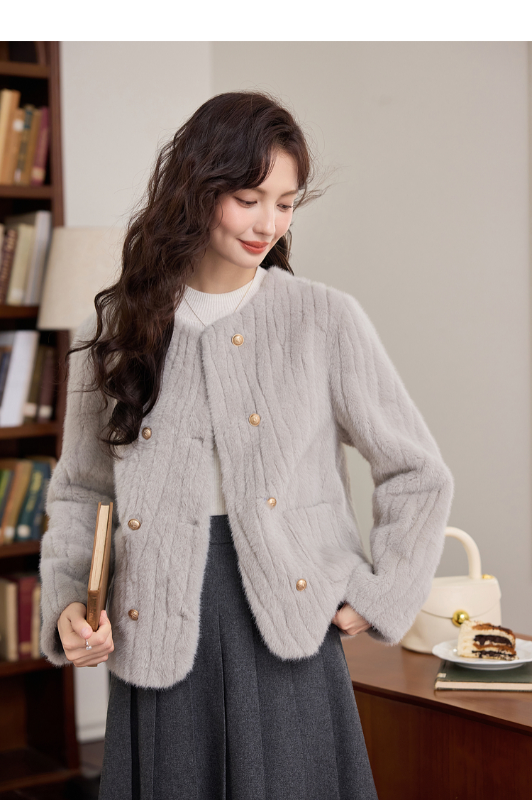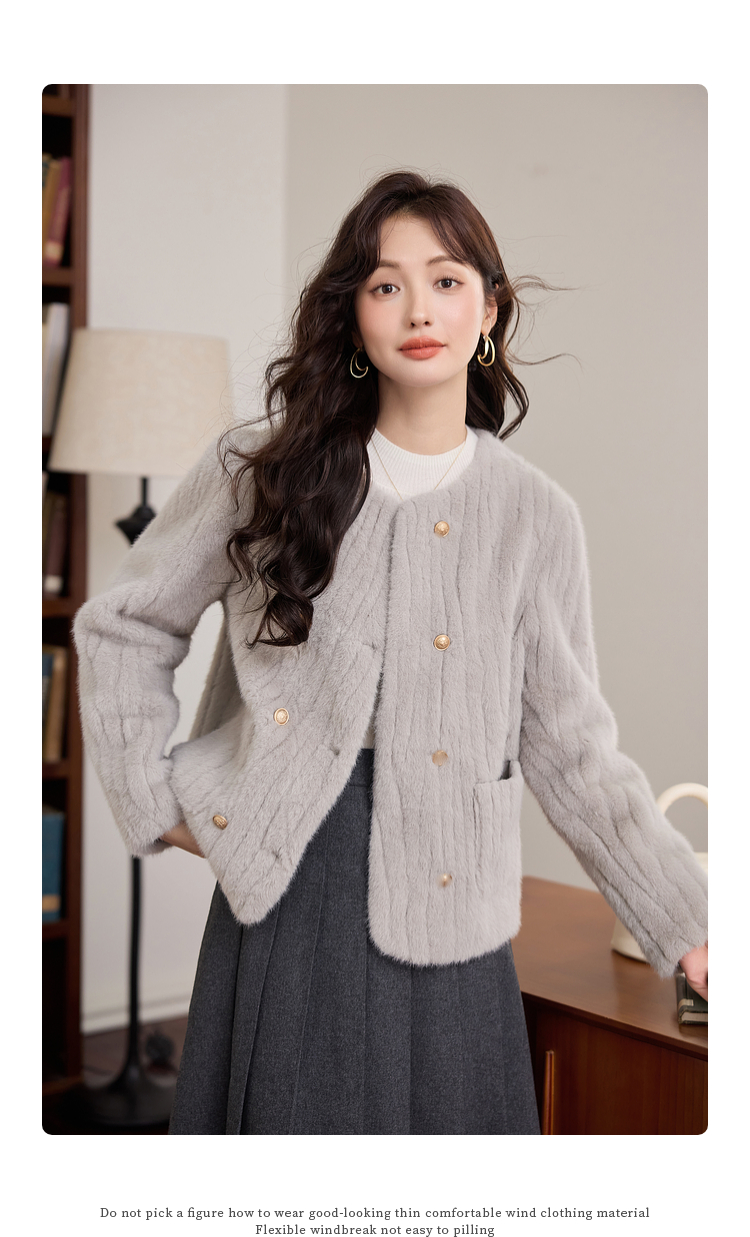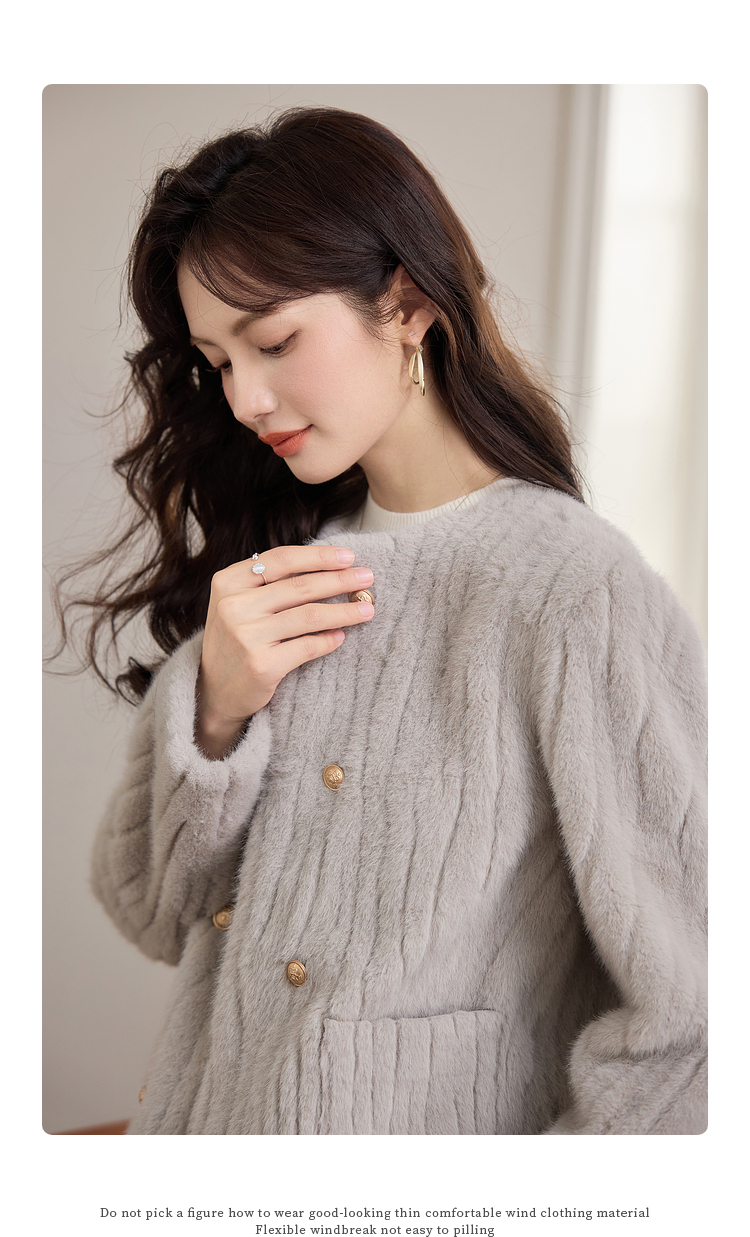 【年终特卖】熙世界皮毛一体毛绒外套女短款小个子冬季仿水貂毛皮草毛茸茸上衣