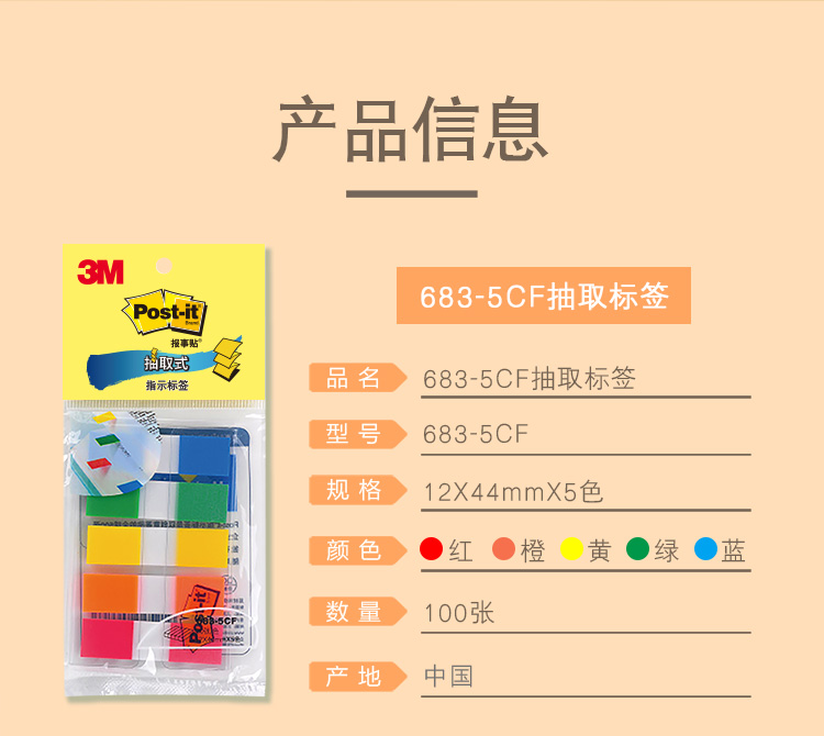 3M 报事贴 便条纸/便利贴/便签纸/透明指示标签683-5CF(5色装)