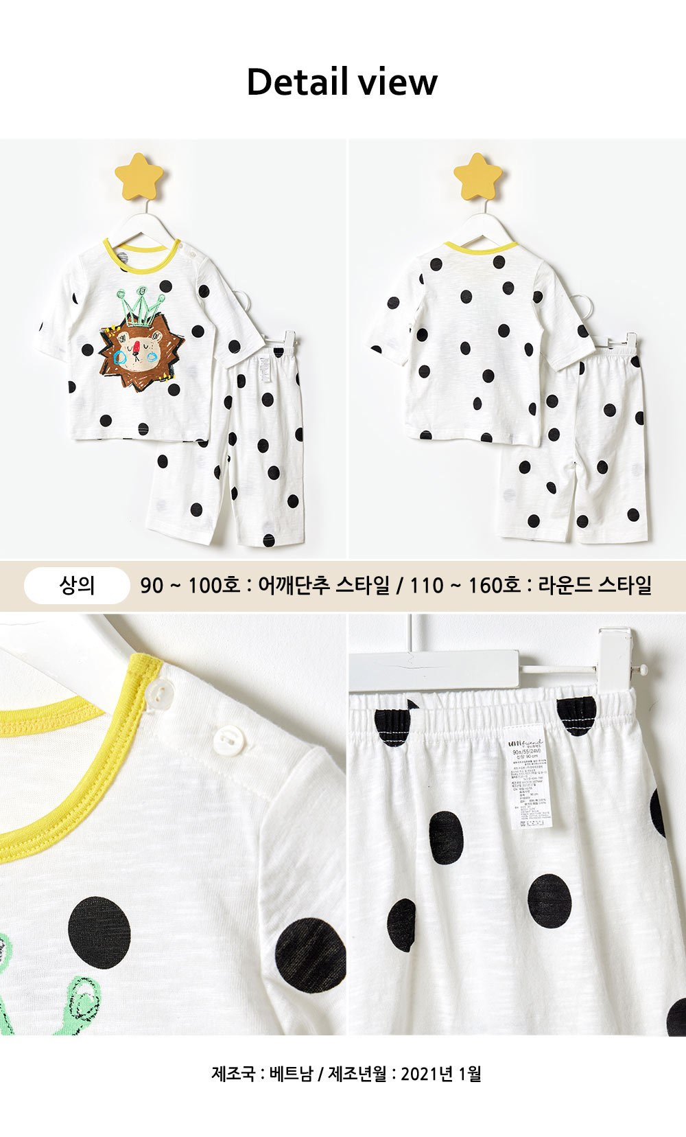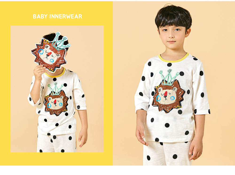 白色狮子(7分袖薄棉)unifriend韩国儿童睡衣夏季薄棉宝宝家居服7分短袖套装可爱卡通
