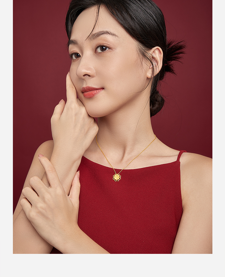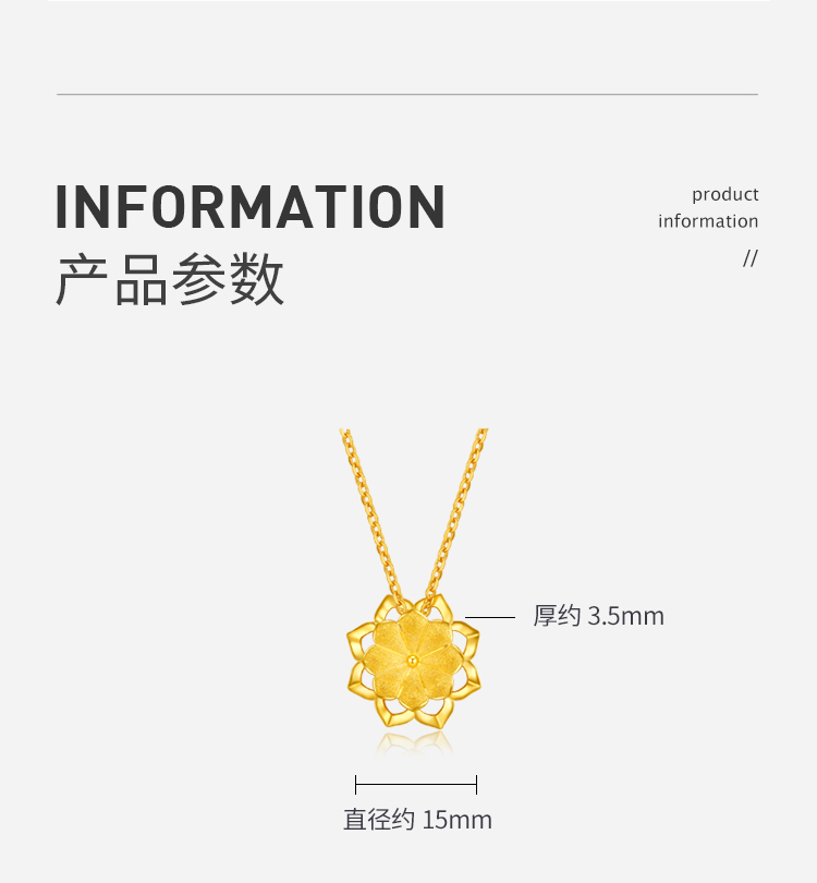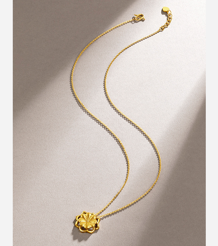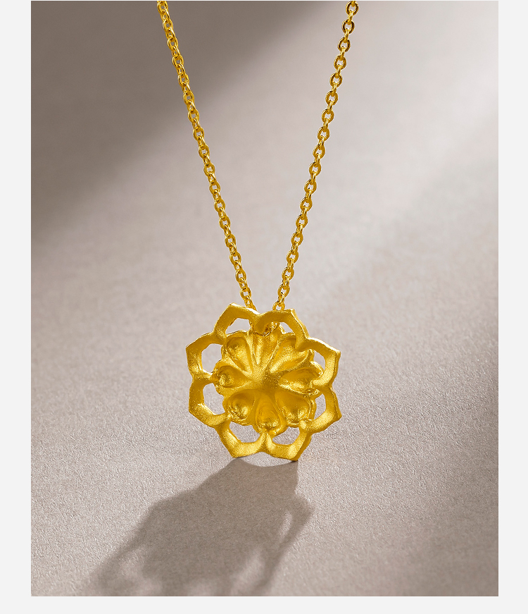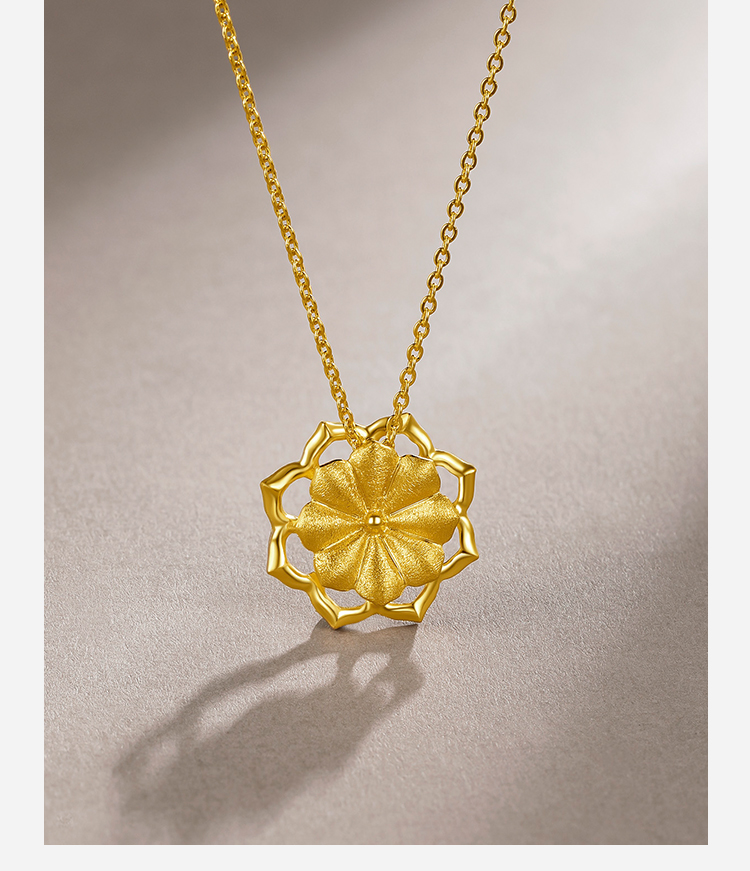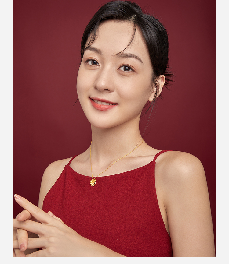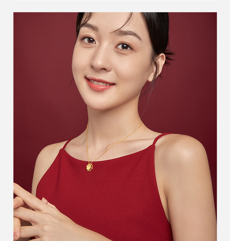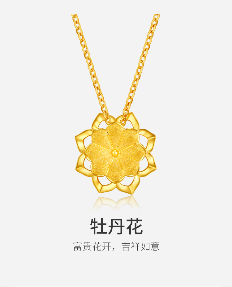 周六福黄金项链足金女计价牡丹花吊坠送礼送妈妈送女友送女友礼物