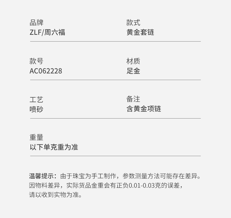 周六福黄金项链足金珠宝素链女水波链锁骨链计价首饰送女友礼物