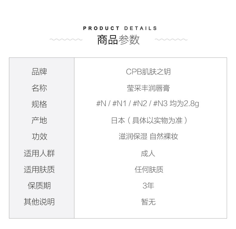CPB肌肤之钥唇膏小粉管樱花变色唇膏2.8g N号无色唇膏 /N1号粉色唇膏/N3橙色唇膏 口红少女粉