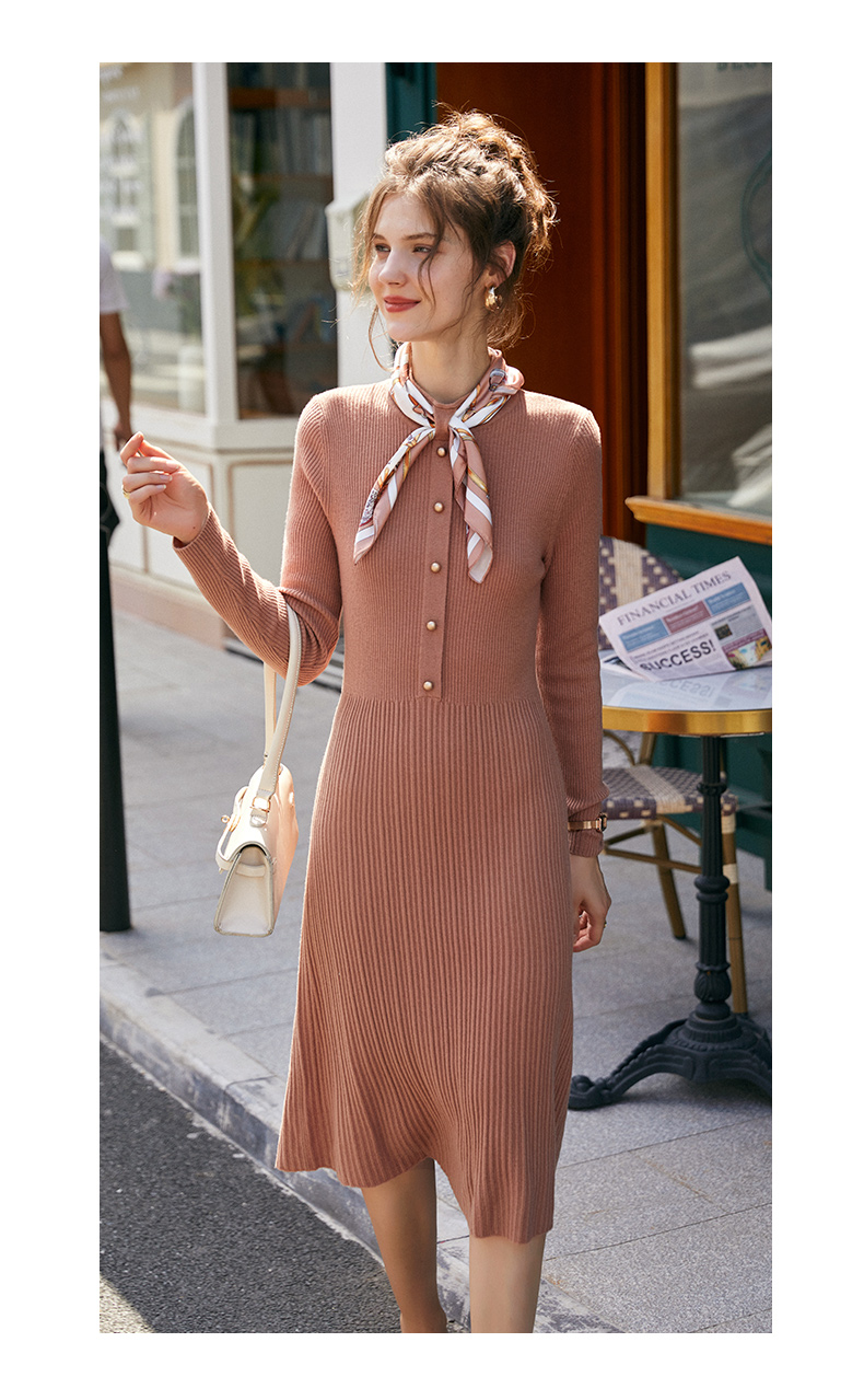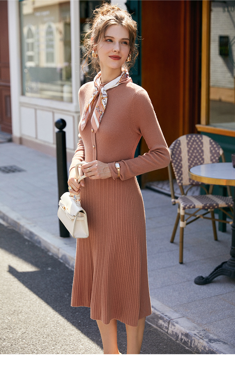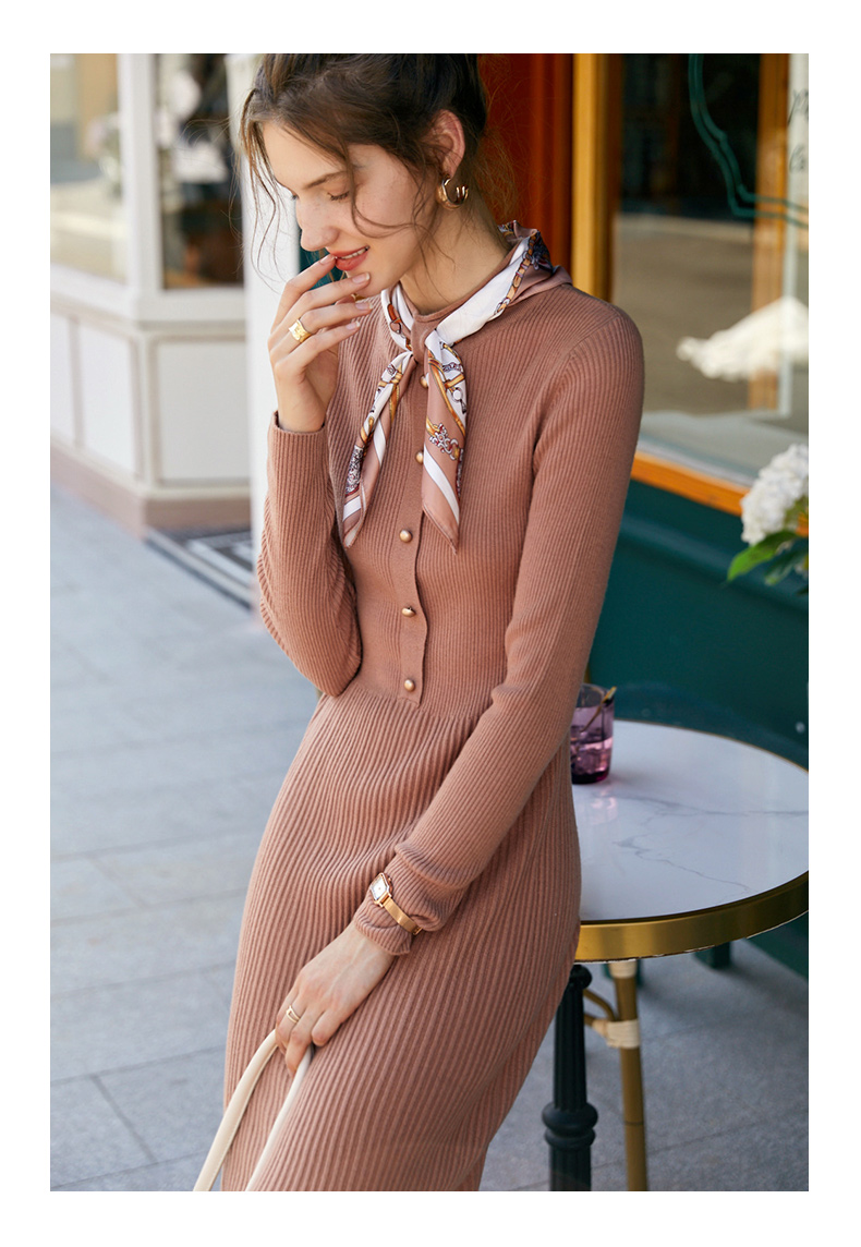欧芮儿针织连衣裙女春秋新款2021收腰显瘦时尚法式修身时髦纯色裙
