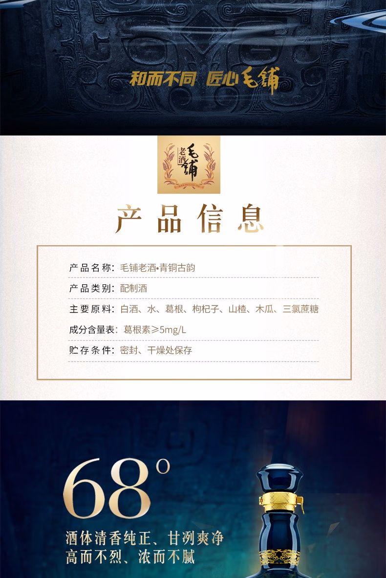 劲牌毛铺老酒 青铜古韵 清香型白酒68度 680ml*1瓶