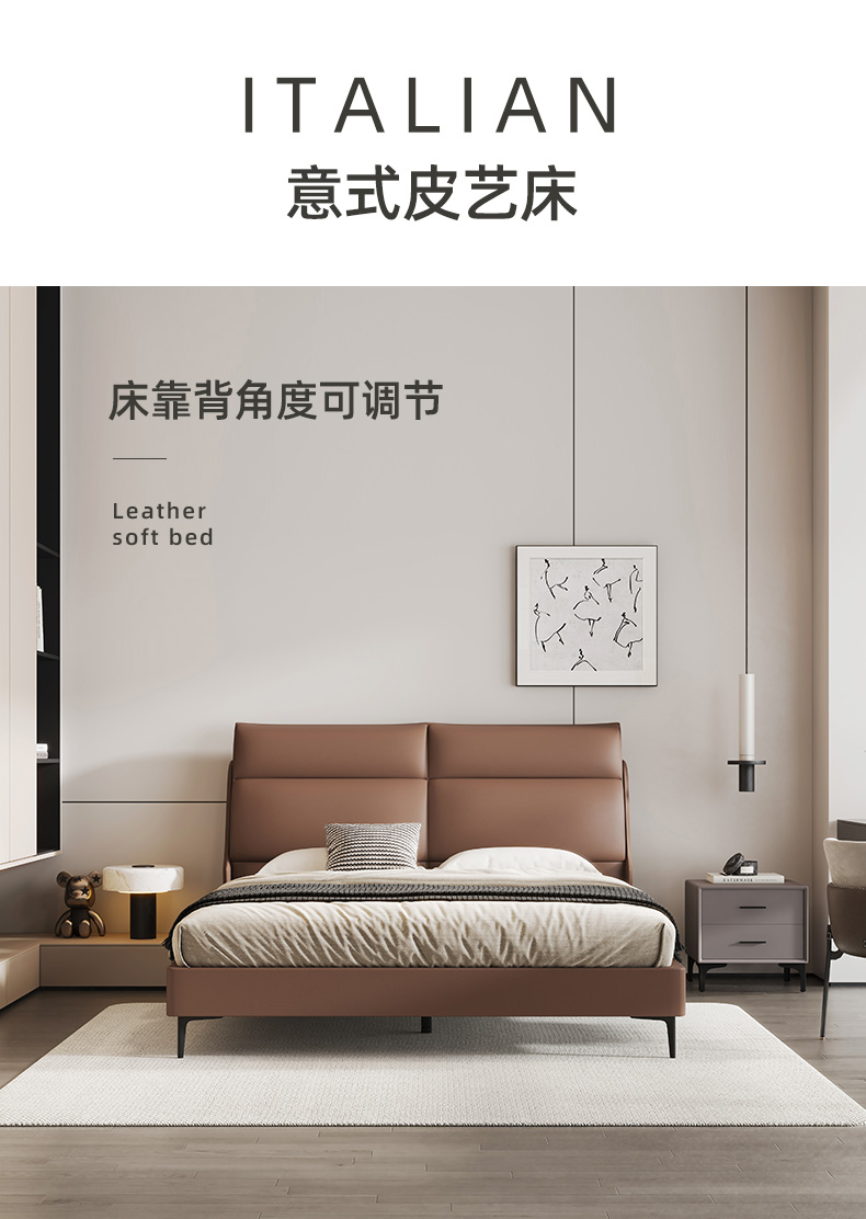喜梦宝软床简约意式主卧生态真皮床1.8米皮艺软床轻奢双人床