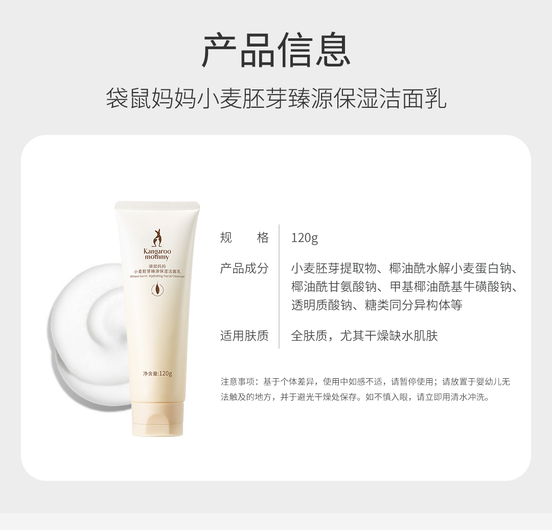 【保湿洁颜】深彻净污垢 双重保湿成分 洗后不干绷 小麦胚芽臻源保湿洁面乳120g