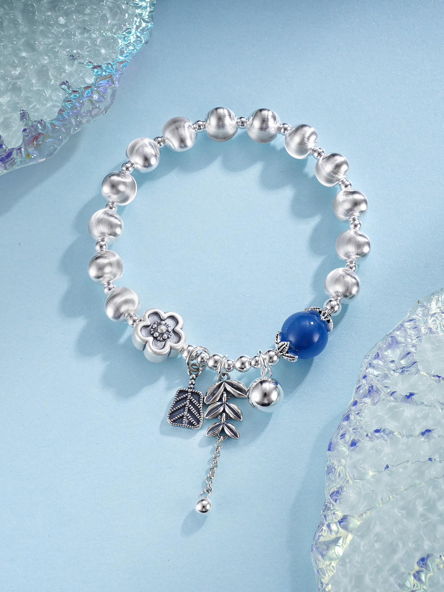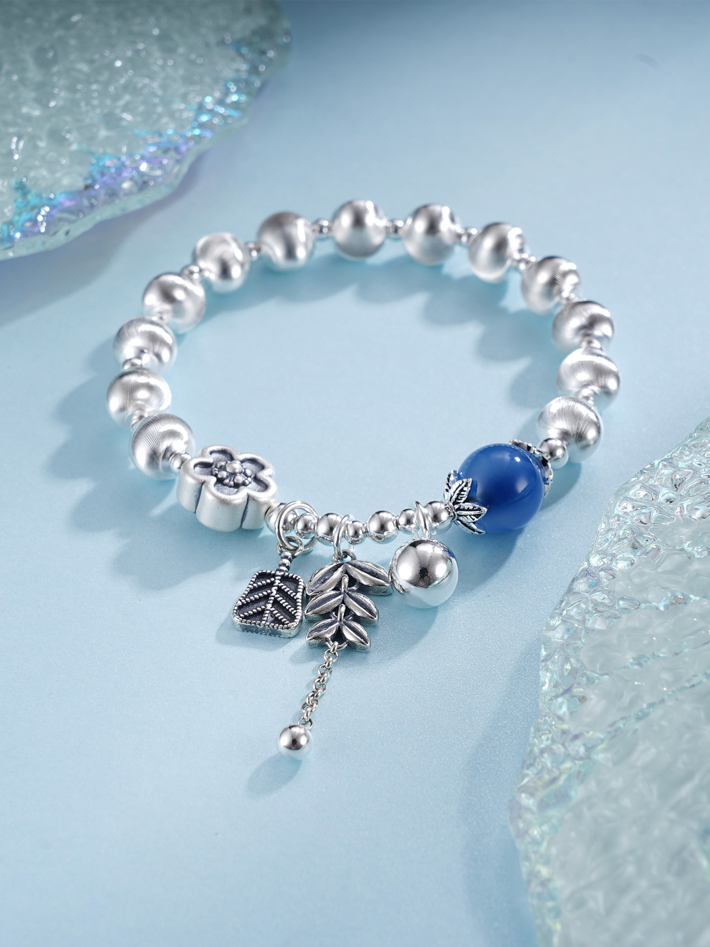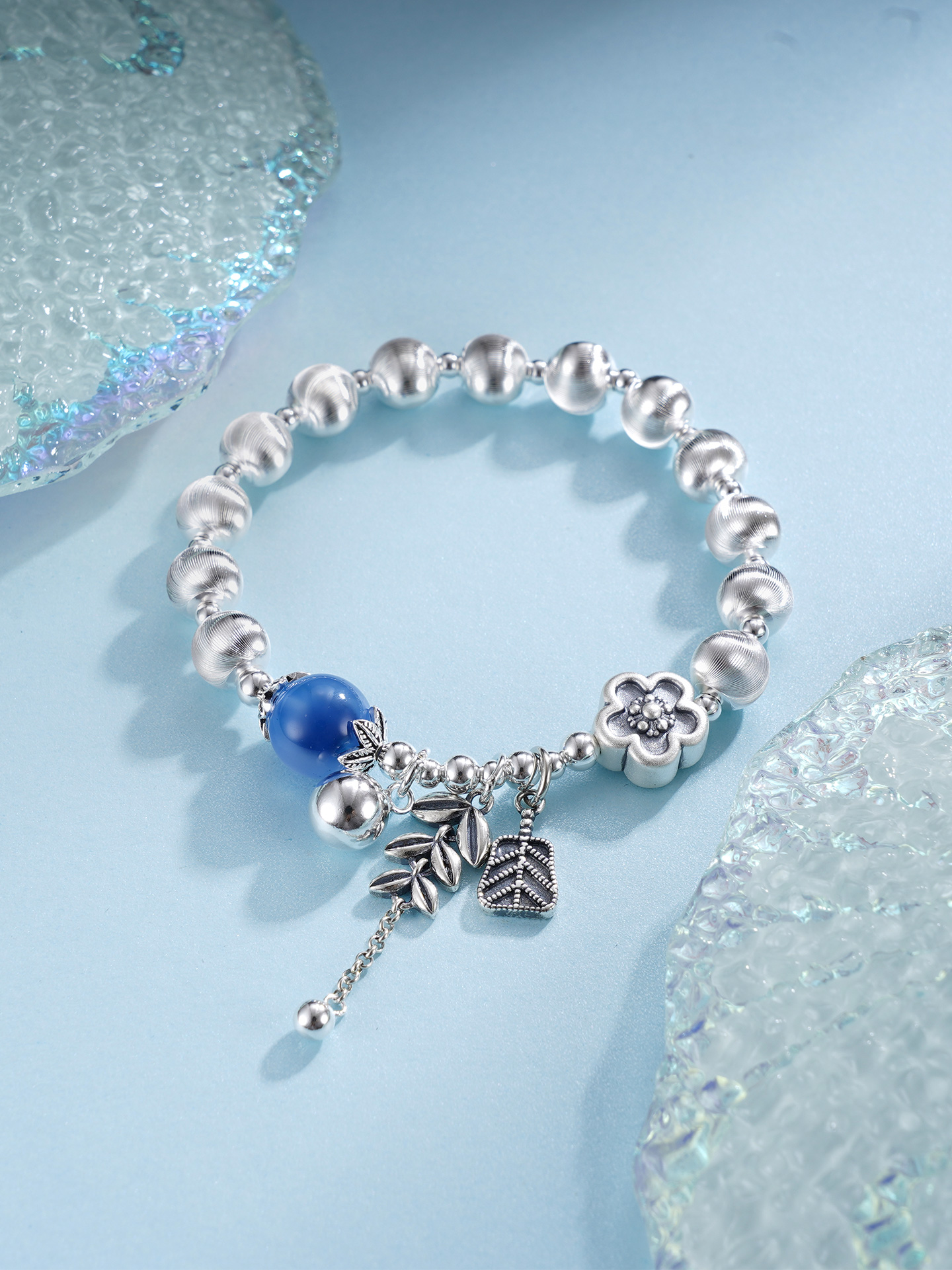 子佩集S925银【蓝海花语】手串【TSB0001-40】纯银手链糖心玛瑙花朵麦穗2509