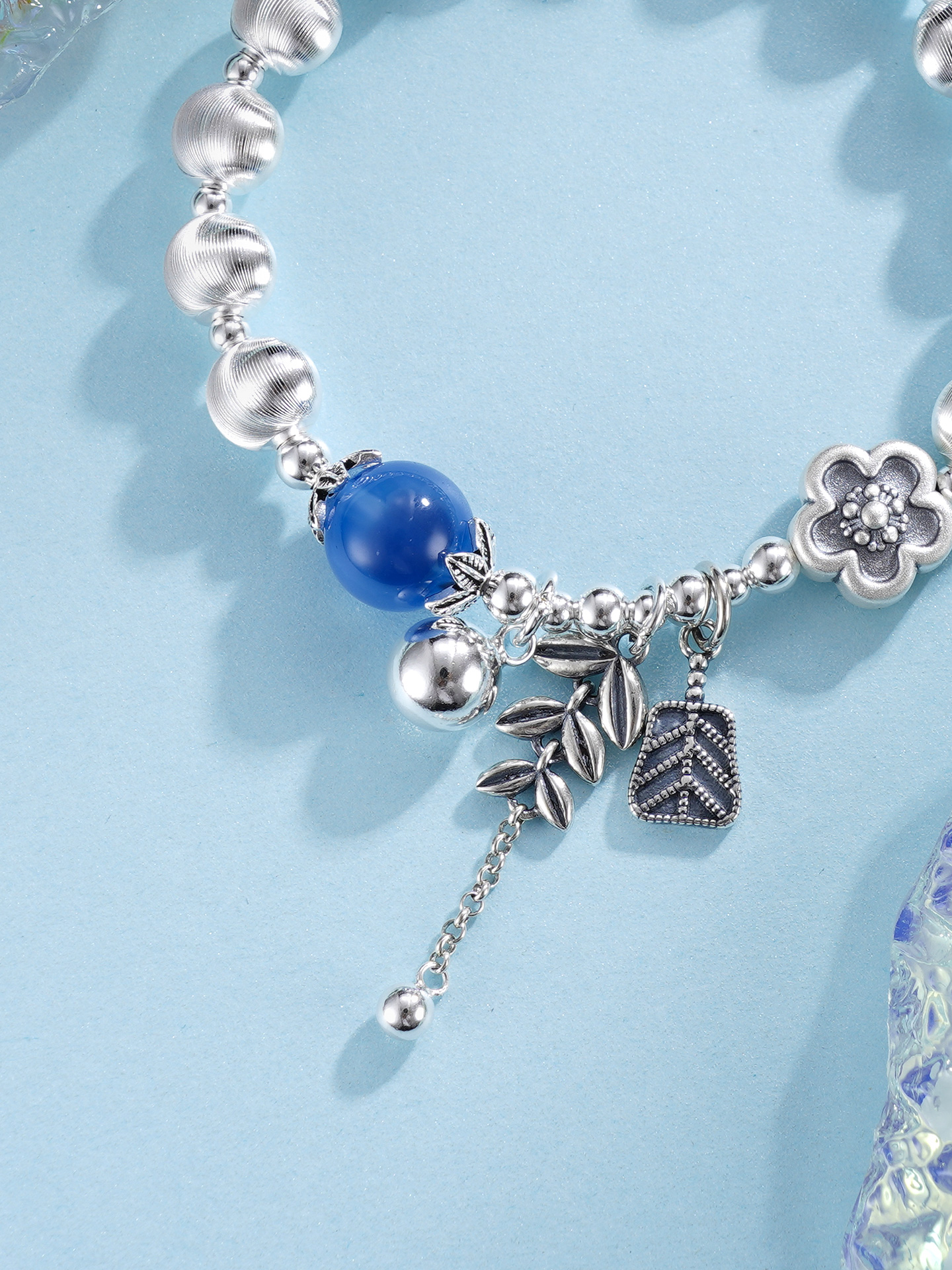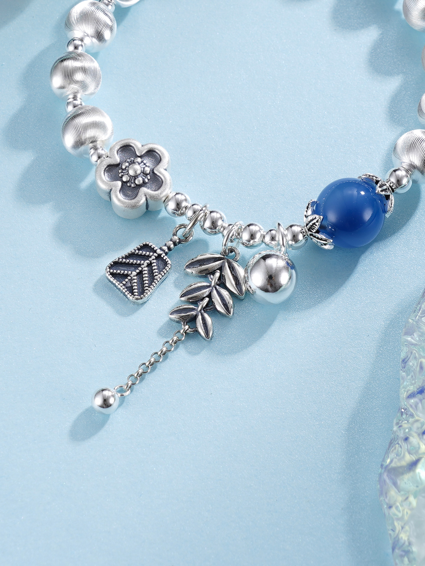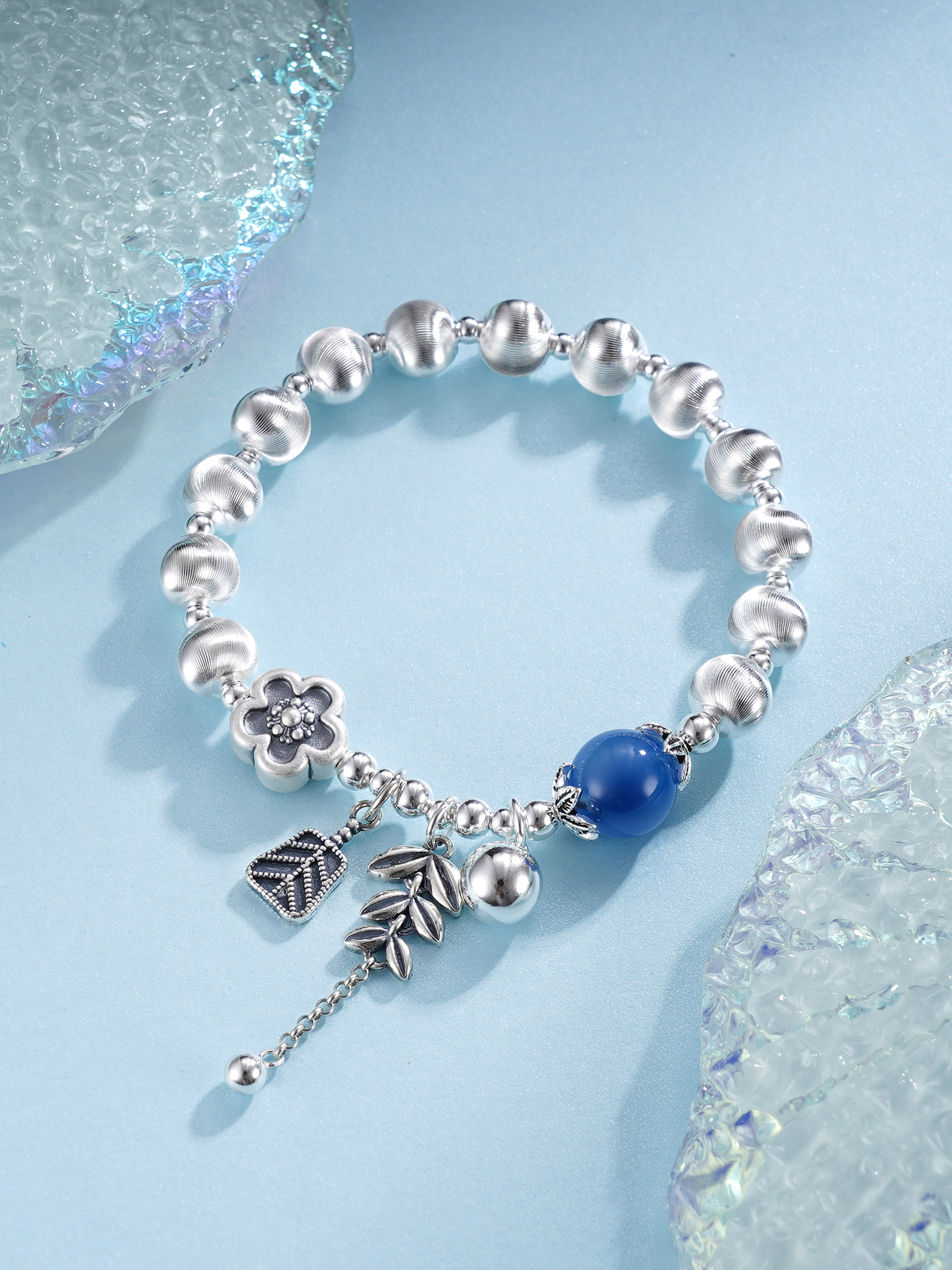 子佩集S925银【蓝海花语】手串【TSB0001-40】纯银手链糖心玛瑙花朵麦穗2509
